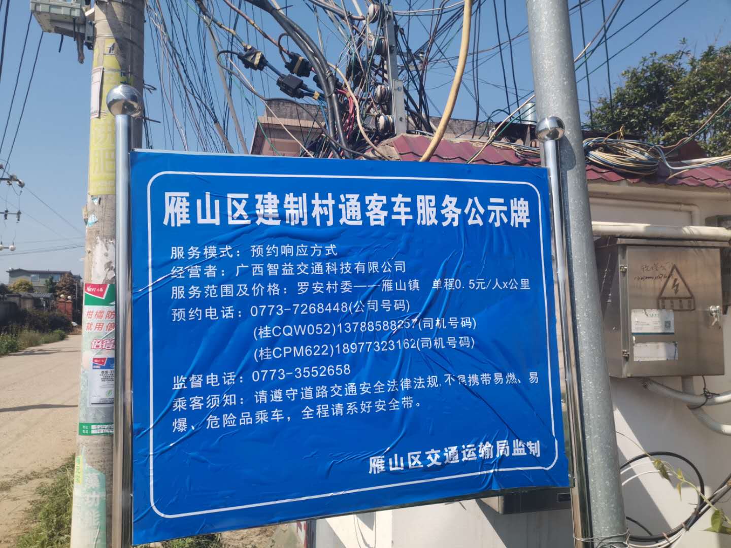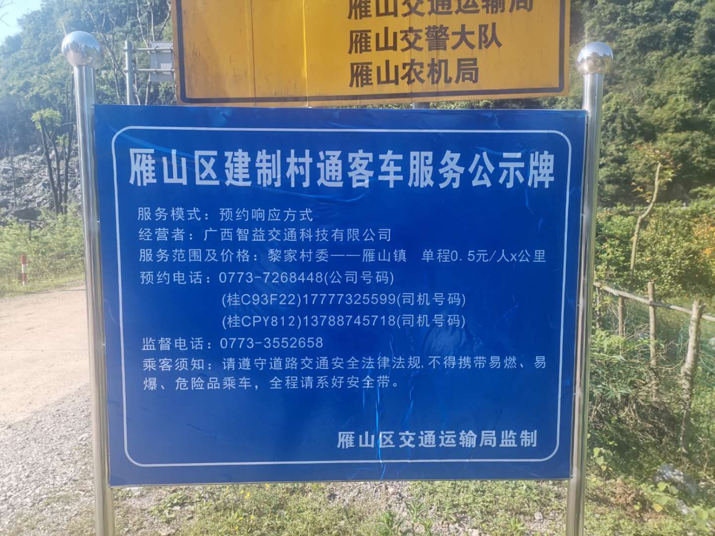黎家村建制村通客车服务公示牌
