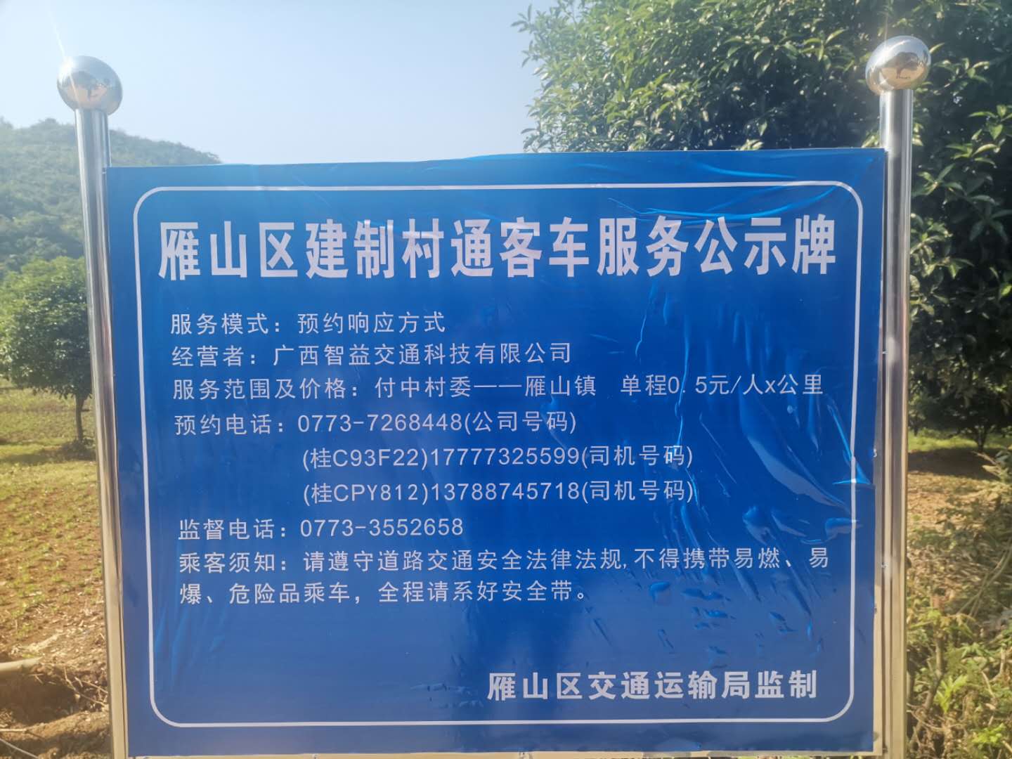 兴隆村建制村通客车服务公示牌