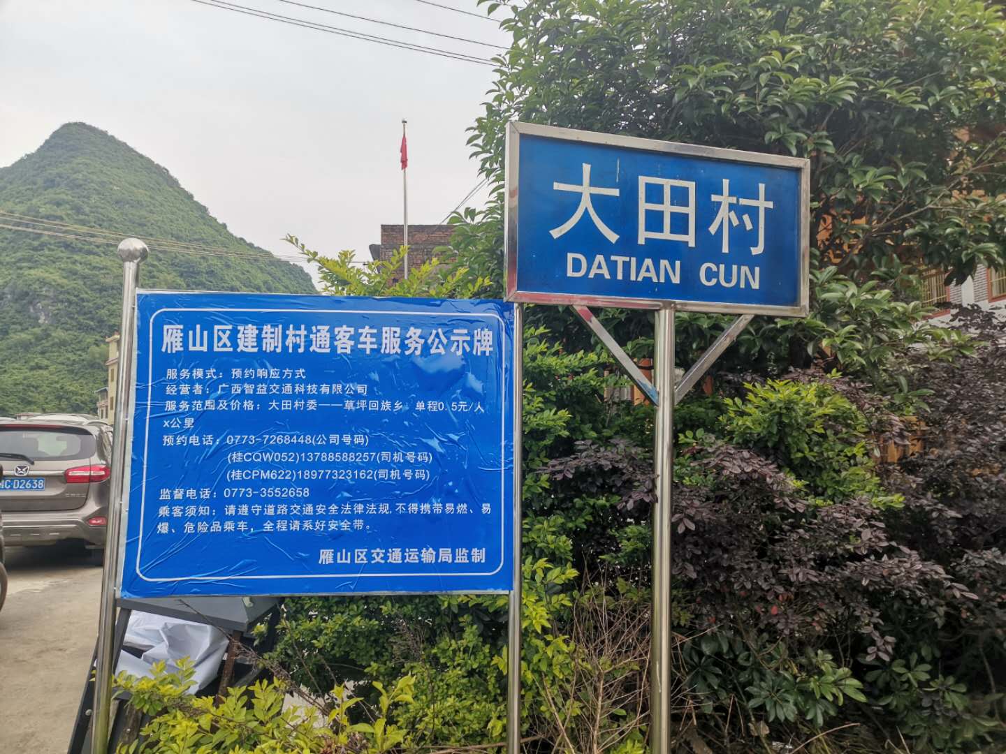 大田村建制村通客车服务公示牌