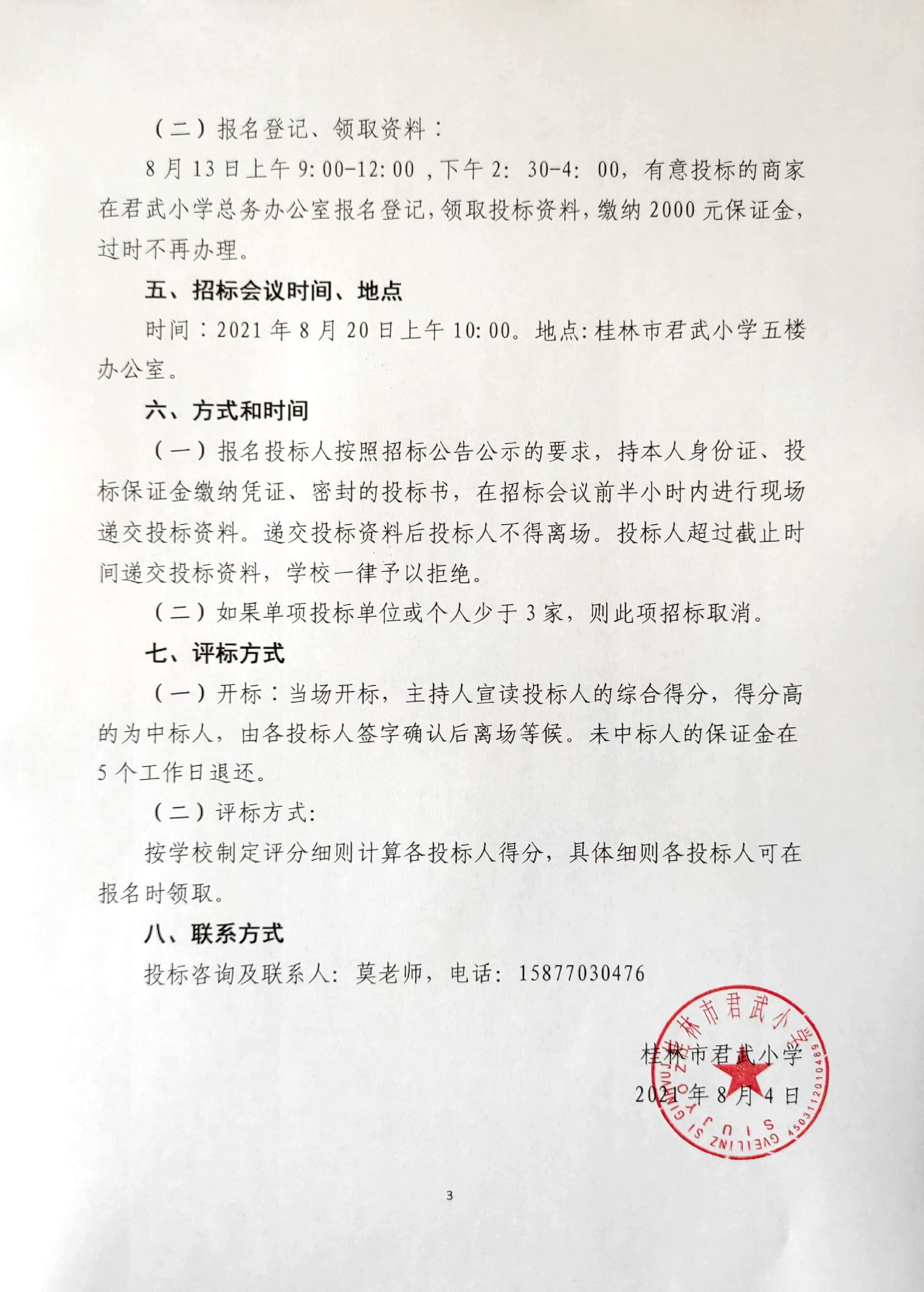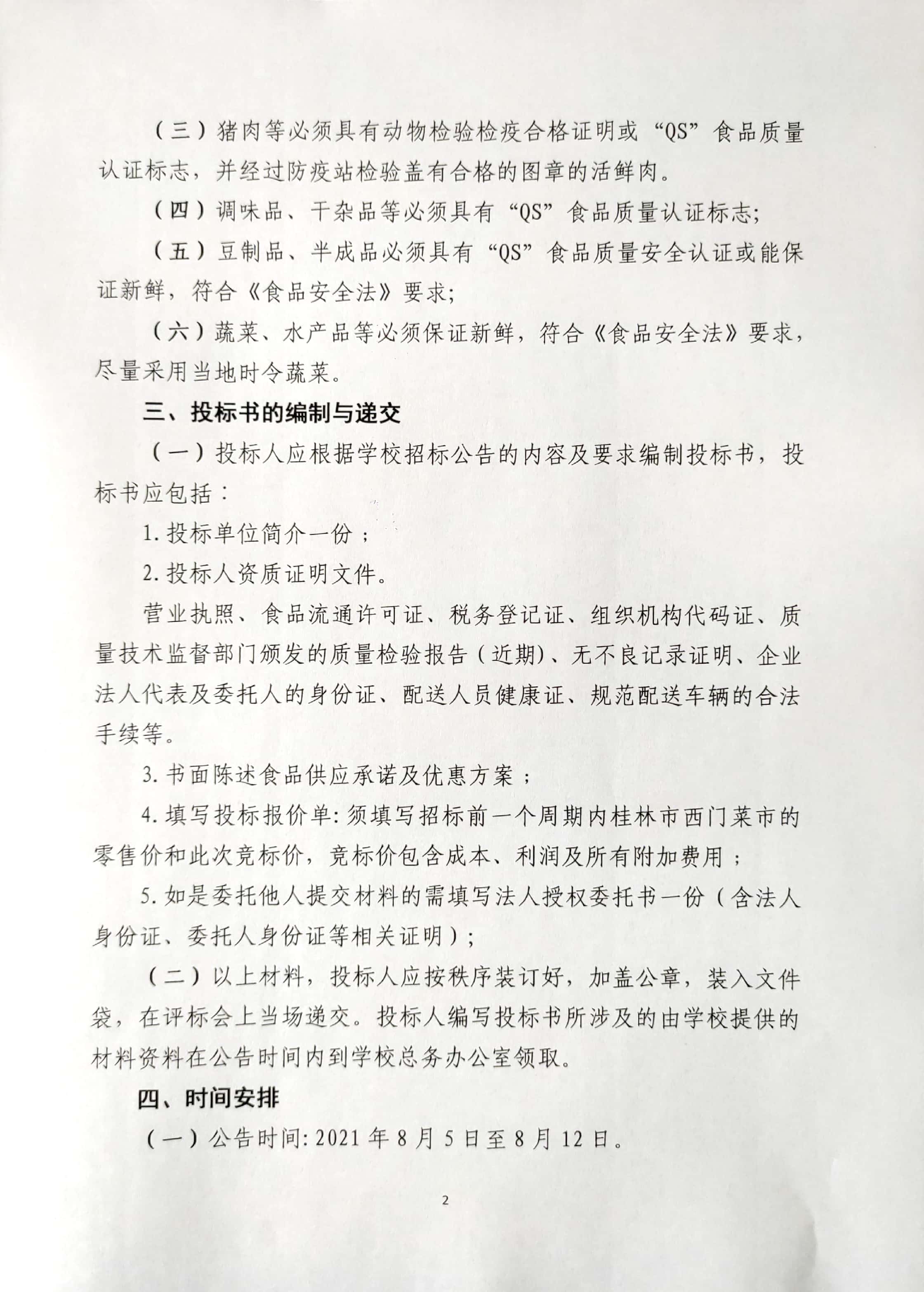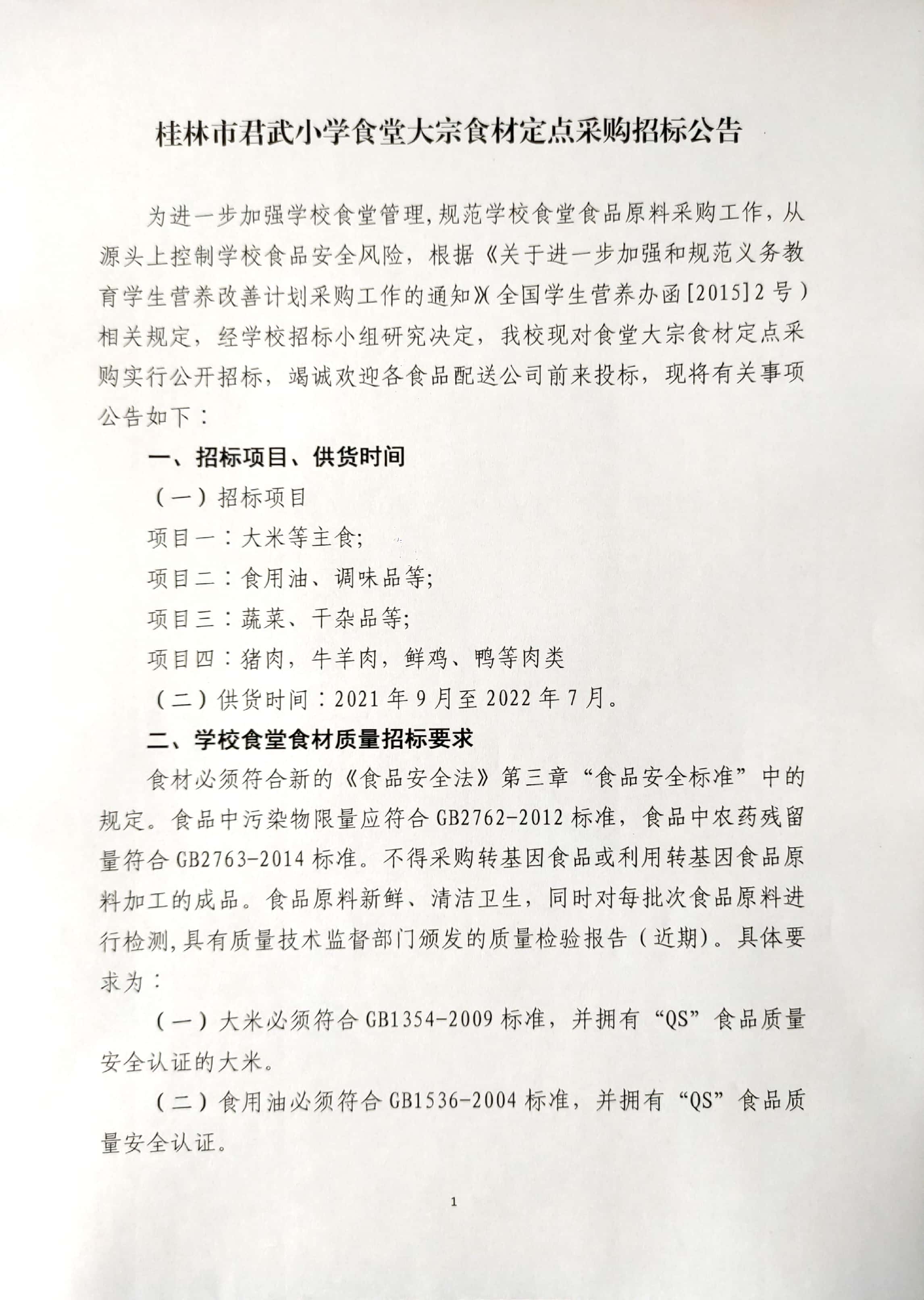 桂林市君武小学食堂大宗食材定点采购招标公告