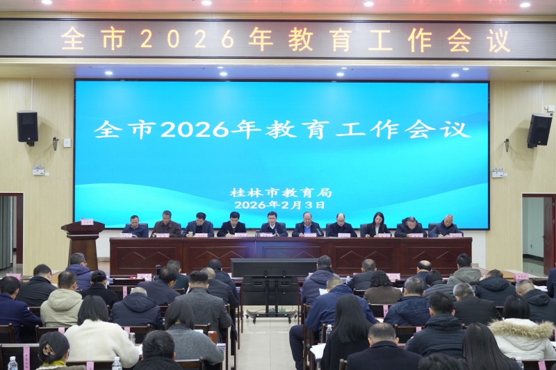 会议强调,做好2026年教育工作,意义重大,责任如山。2026年教育工作的总体要求是:坚持以习近平新时代中国特色社会主义思想为指导,全面贯彻落实党的二十大及二十届历次全会精神,深入贯彻落实习近平总书记关于教育的重要论述,认真落实全国、全区教育工作会议精神和市委、市政府工作要求,特别是李楚书记、卢新华市长对全市教育工作的部署要求,牢牢把握高质量发展这个首要任务,坚持“以改革创新为发展动力,以补短板优结构为关键路径,以促公平惠民生为宗旨使命”,努力办好人民满意的教育,奋力谱写桂林教育现代化新篇章。