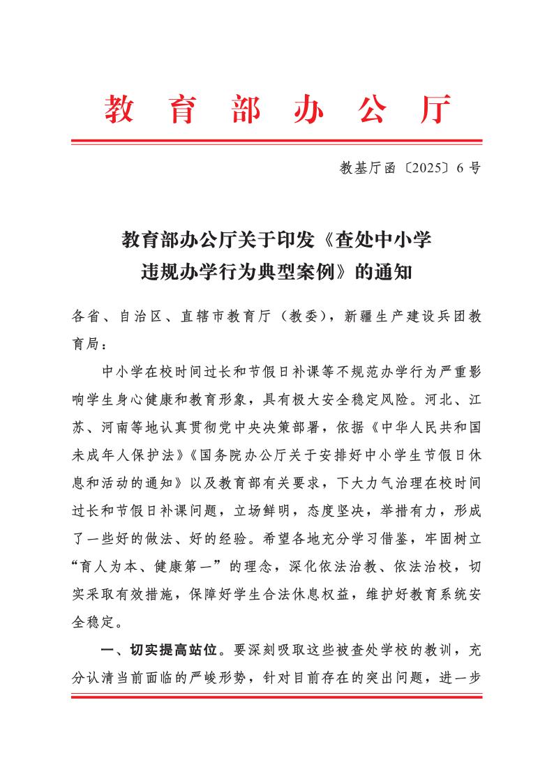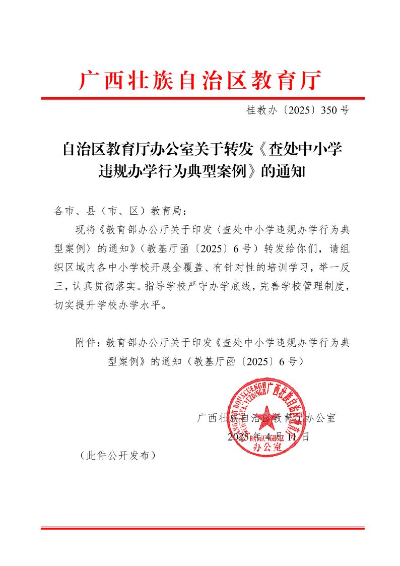 【政策】桂教办〔2025〕350号自治区教育厅办公室关于转发《查处中小学违规办学行为典型案例》的通知