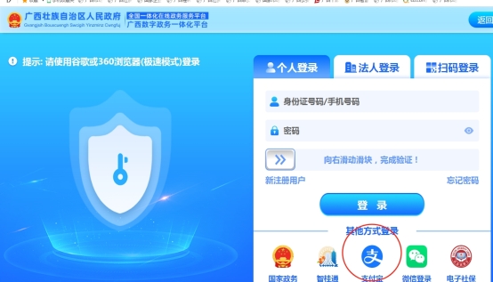 推荐使用“支付宝”登录