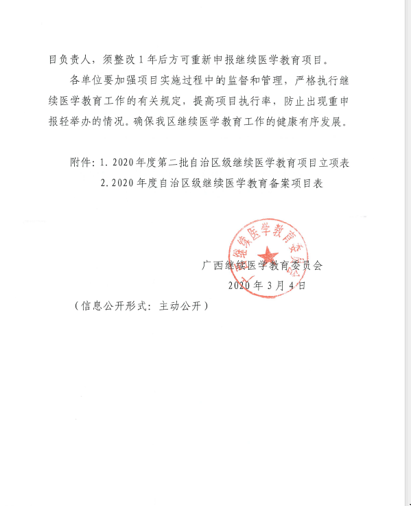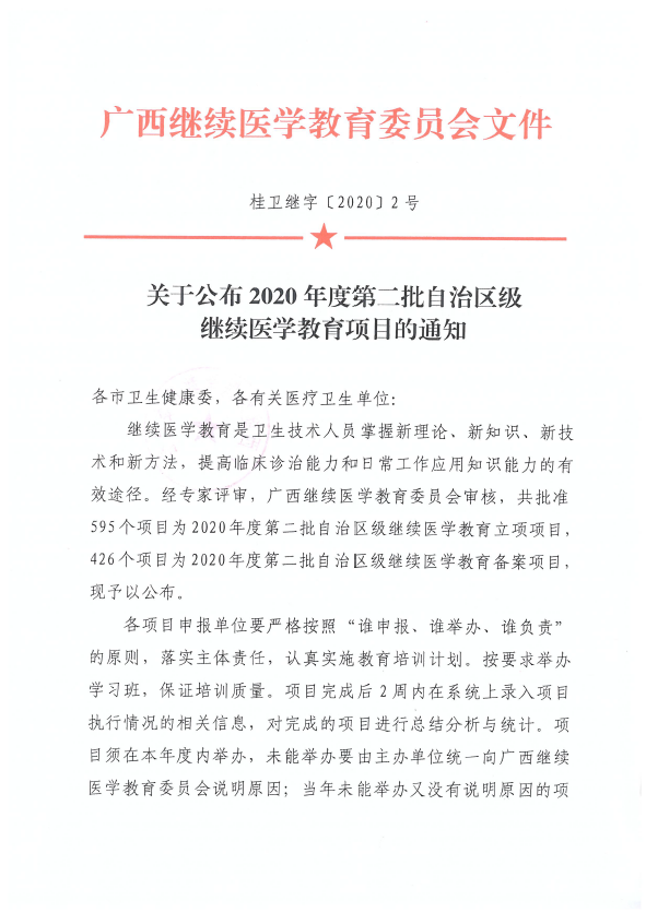关于公布2020年度第二批自治区级继续医学教育项目的通知