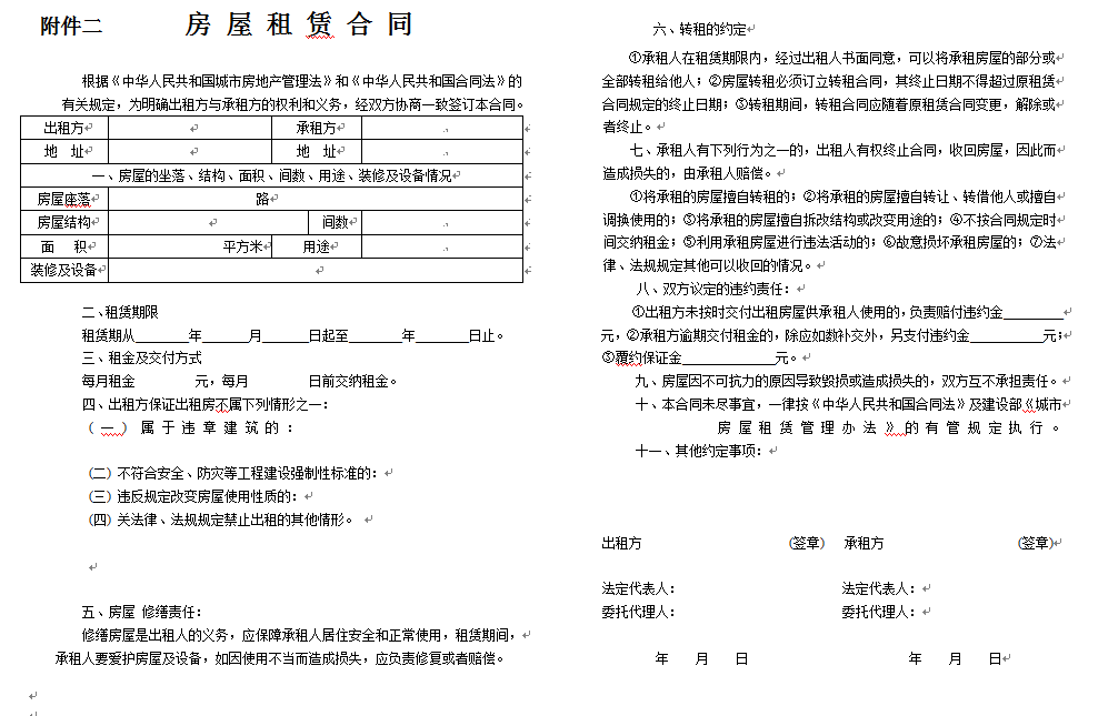 房屋租赁合同范本及申请书范本