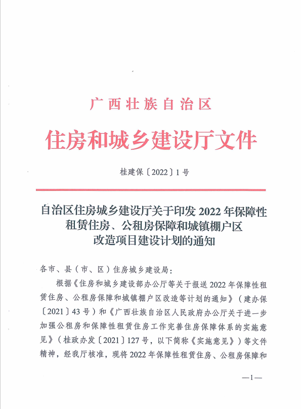 【政策】自治区住房城乡建设厅关于印发2022年保障性租赁住房、公租房保障和城镇棚户区改造项目建设计划的通知