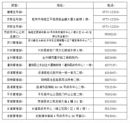 桂林市住房公积金管理中心业务网点地点、电话