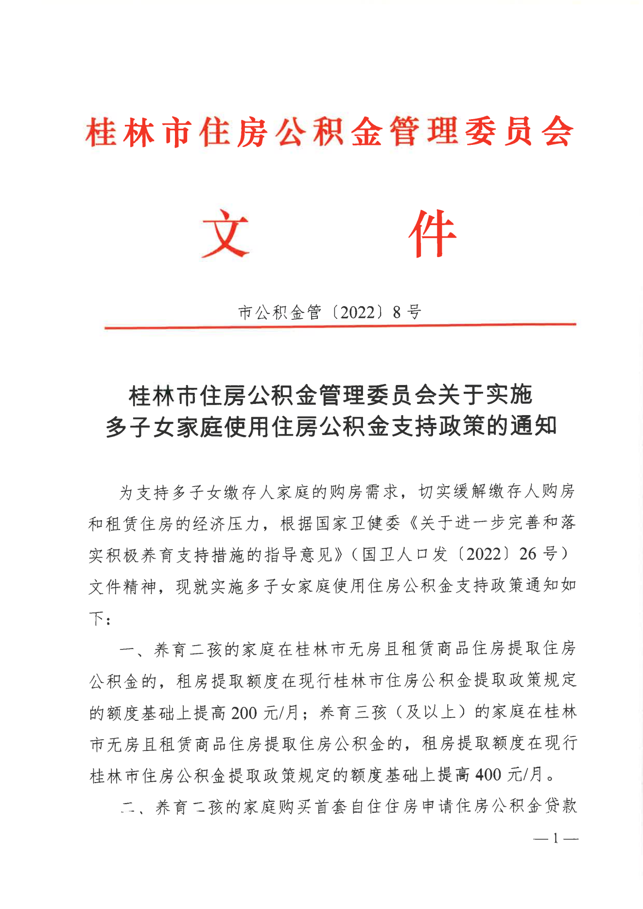 【政策】桂林市住房公积金管理委员会关于实施多子女家庭使用住房公积金支持政策的通知