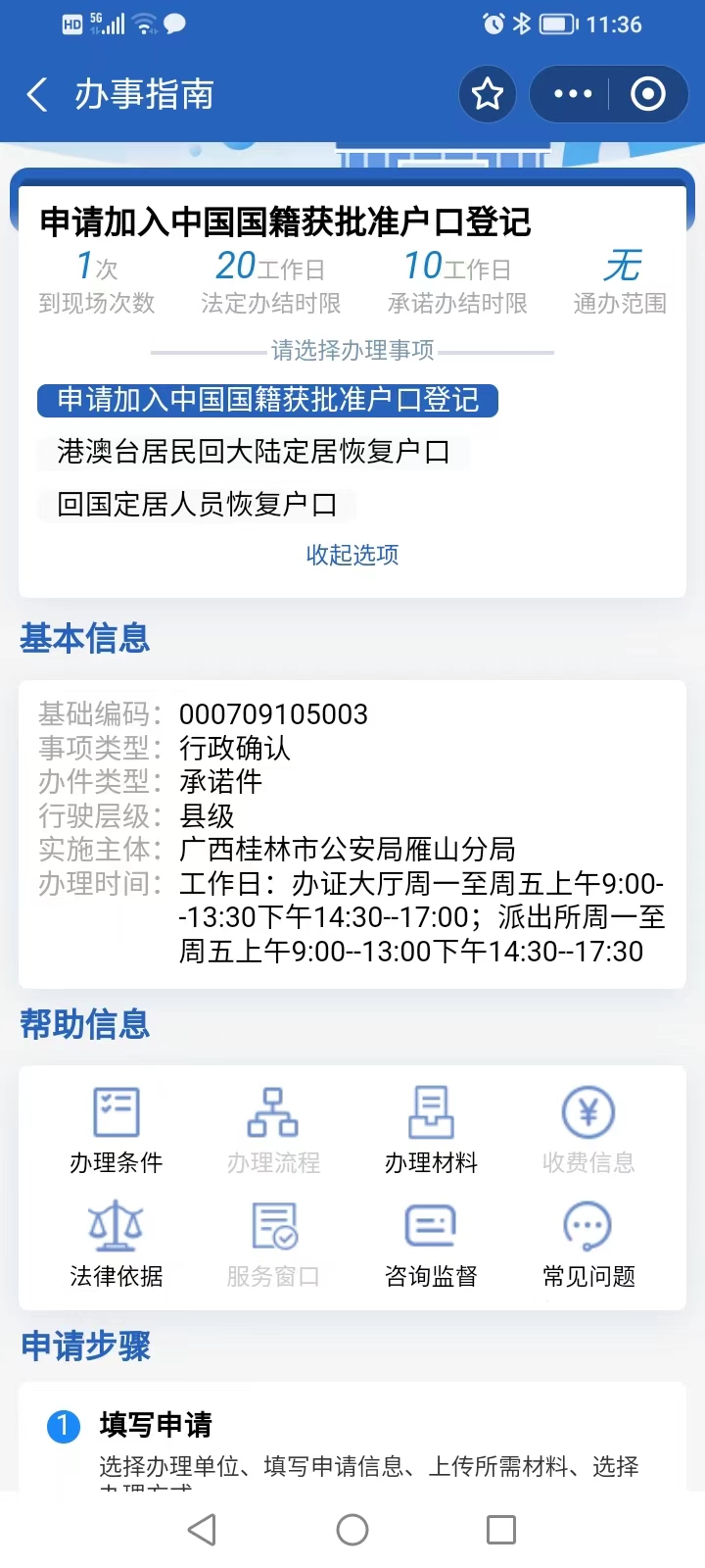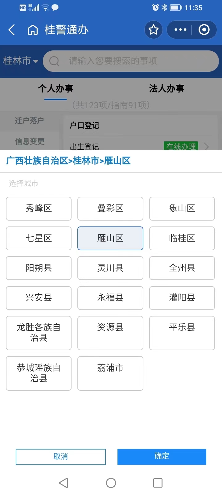7、选择办事的县或城区——以雁山区为例