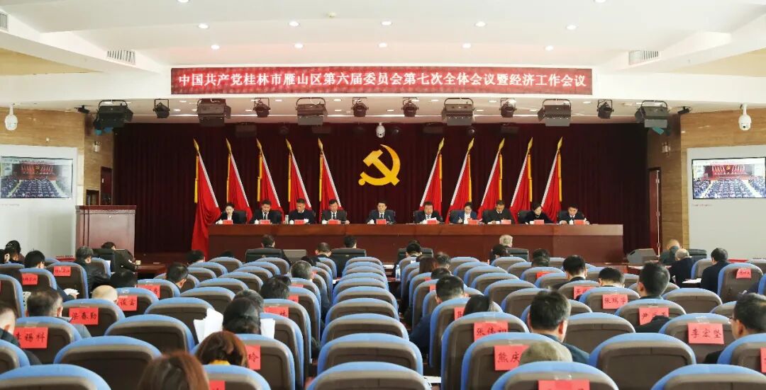 中国共产党桂林市雁山区第六届委员会第七次全体会议暨经济工作会议,于2025年12月30日在雁山召开。出席这次全会的有,区委委员23人、候补委员4人。不是区委委员、候补委员的区人大常委会、区政府、区政协领导班子成员,市管职级调研员,乡镇、街道党政主要负责同志,区直、驻雁相关单位主要负责同志,部分区第六次党代会代表,辖区相关单位列席会议。