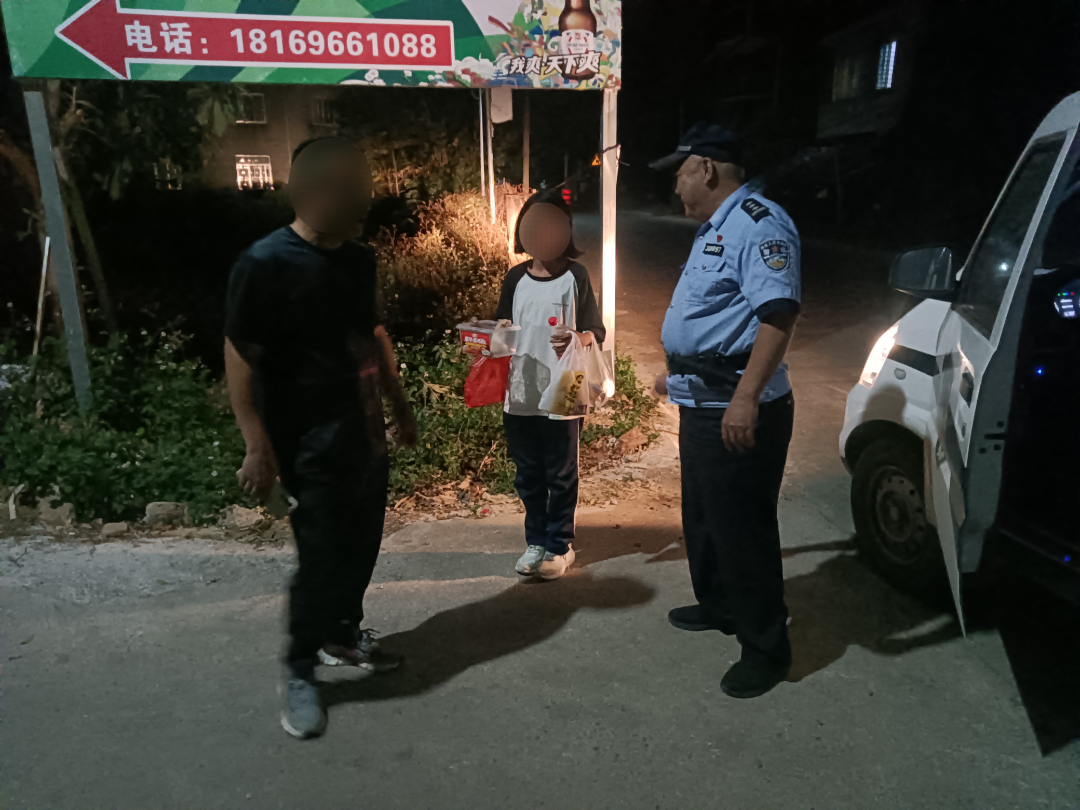 11月11日晚,柘木派出所民警秦初卯和同事在辖区巡查时,发现一名八九岁小女孩独自在昏暗路边行走。秦初卯立即上前询问,得知小女孩黄某趁家人不注意,独自步行至柘木市场买食物,后因错过末班车,也无法联系家人。民警对小女孩进行了批评教育,提醒她晚上不能独自外出,要提高警惕。小女孩认识到错误并表示改正。随后,联系上其父亲黄先生,为确保女孩安全,秦初卯和同事一起将小女孩安全送回家中,同时也对家长进行了提醒和教育,黄先生对民警的及时帮助表示感谢,并承诺以后会照看好小孩。