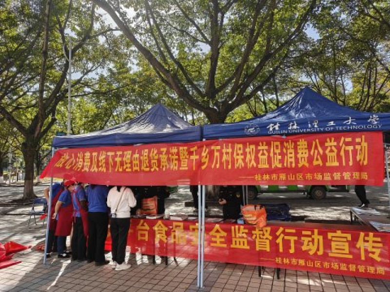 为改善消费环境、激发消费活力、增强消费信心,2025年11月27日,桂林市雁山区市场监督管理局在桂林理工大学雁山校区,开展了“优化消费环境月”宣传活动。