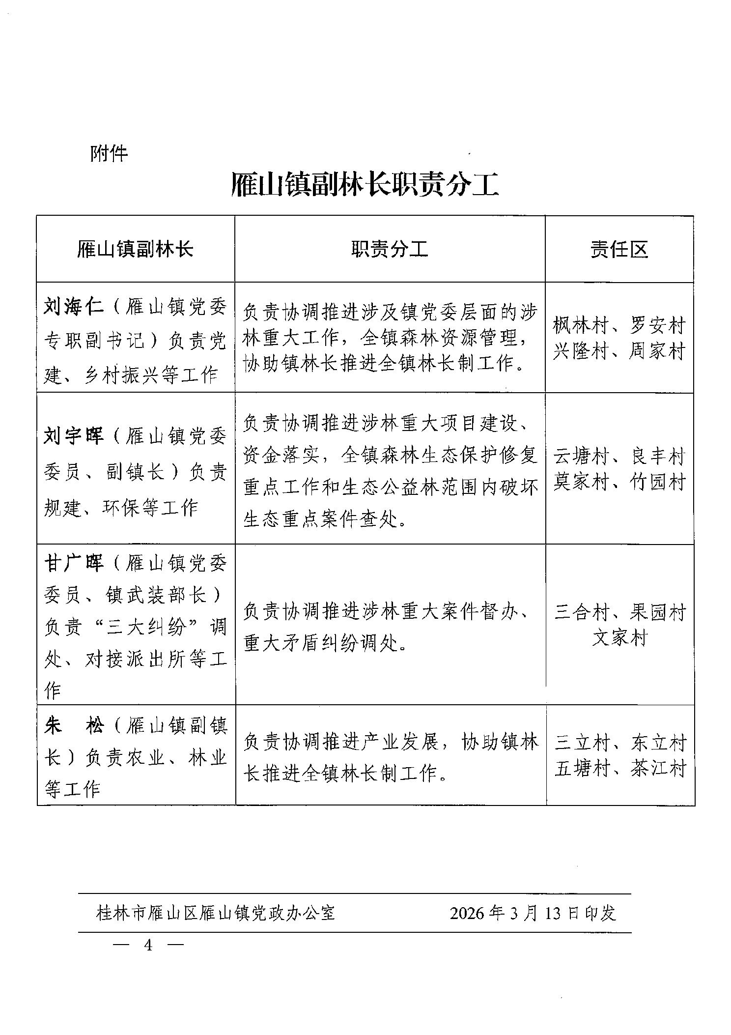 【雁山镇公告】雁镇发〔2026〕88号 关于调整雁山镇全面推行林长制工作领导小组的通知