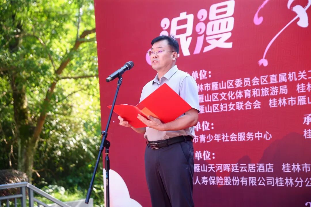 日前,由区直属机关工委、区总工会、团区委、区体旅局、草坪回族乡等单位共同主办的“浪漫七夕·爱在冠岩”百人交友联谊活动在桂林漓江冠岩风景区举行。来自雁山区企事业单位、驻地部队以及社会各界的200余名单身男女青年齐聚一堂,在轻松愉悦的氛围中寻觅良缘、收获友谊。区委副书记陈波出席活动并致辞。