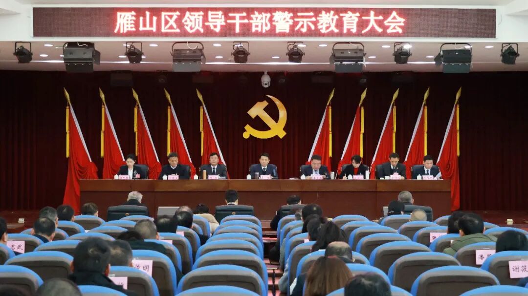 1月27日,雁山区召开领导干部警示教育大会。区委书记李强出席会议并讲话,强调要深入学习贯彻习近平总书记在党的二十届四中全会和二十届中央纪委五次全会上的重要讲话精神,贯彻落实自治区、桂林市领导干部警示教育大会精神,结合我区近年来查办的典型案件,持续强化警示震慑,加强教育引导,汲取蓝天立、周家斌、刘有文、唐忠宏案件的教训,扎实以案促改促治,持续深化正风肃纪反腐,加大一体推进“三不腐”力度,更加有力有效铲除腐败滋生的土壤和条件,统筹建好政治生态、自然生态“两个生态”,为“十五五”开局起步、奋力谱写中国式现代化雁山篇章提供坚强保障。区长潘军华主持会议。区人大常委会主任蒋桂斌、区政协主席李红出席会议。