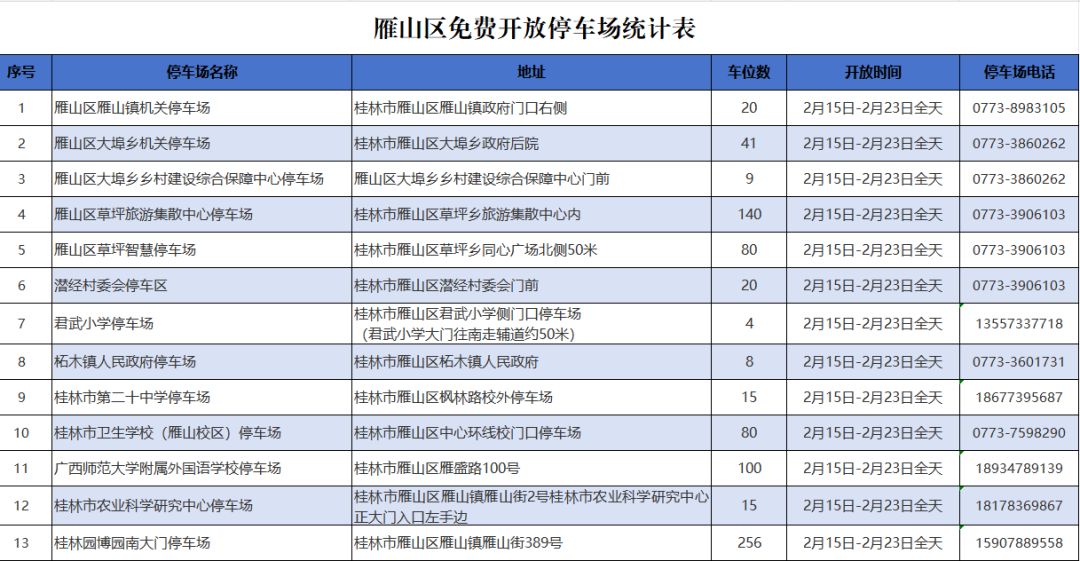 2026年春节假期雁山区788个停车位,