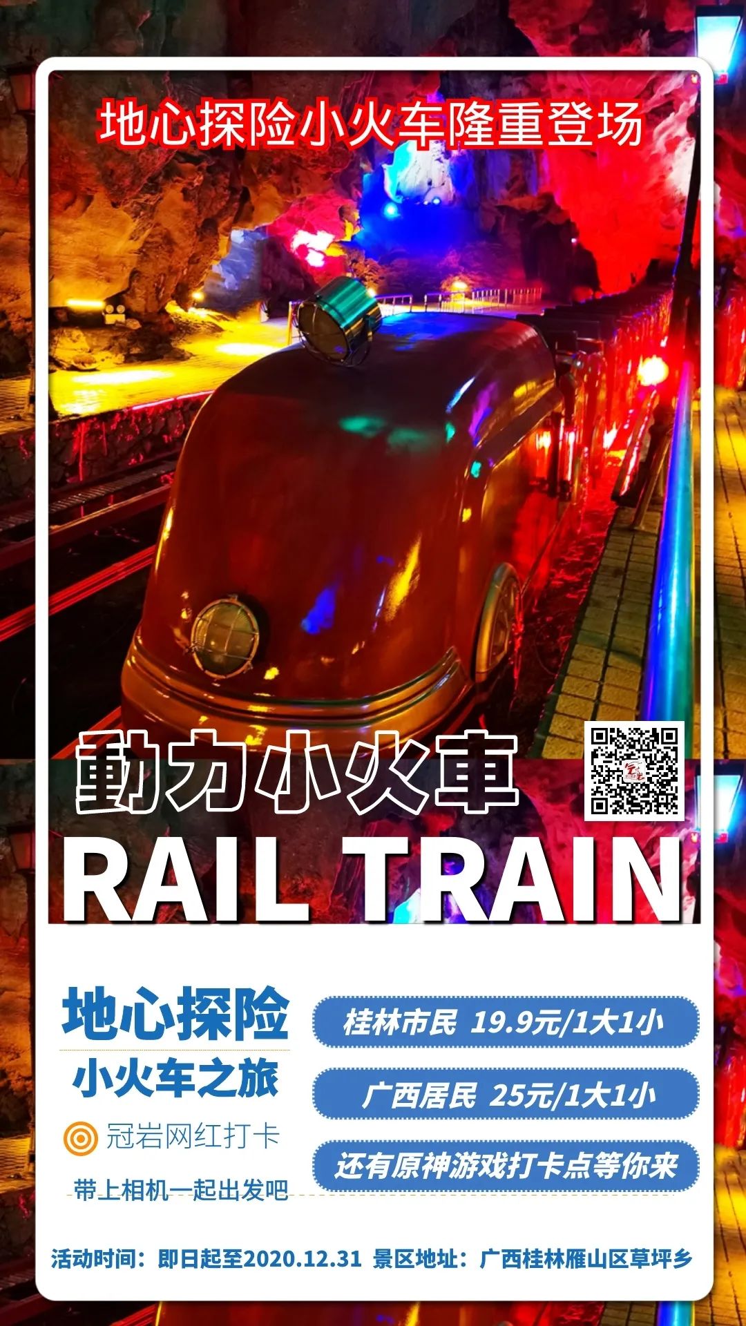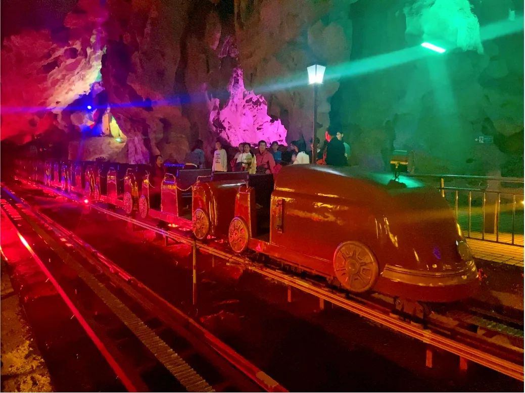 冠岩地下峡谷观光小火车为全国首家洞内观光小火车,运营了二十多年后,景区新投入近千万元,对洞内小火车进行升级改造,终于迎来了冠岩第二代“地心探险”小火车。