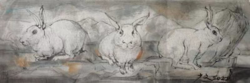 年年岁岁花相似,岁岁年年人不同。三年抗疫,一朝解封。老虎吃肉兔儿吃草,但愿各有所安。正值严冬,借此自带光芒的作品,权当来年一抹春色。