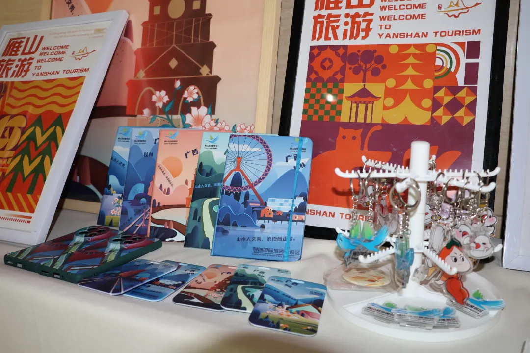 现场还举办了雁山文创设计作品展,该项目是桂林旅游学院与我区校地合作项目,高校学生们通过走进雁山,了解雁山,将雁山元素设计在人们喜闻乐见、富有创意的产品上,为雁山文旅融合发展注入新生力量。
