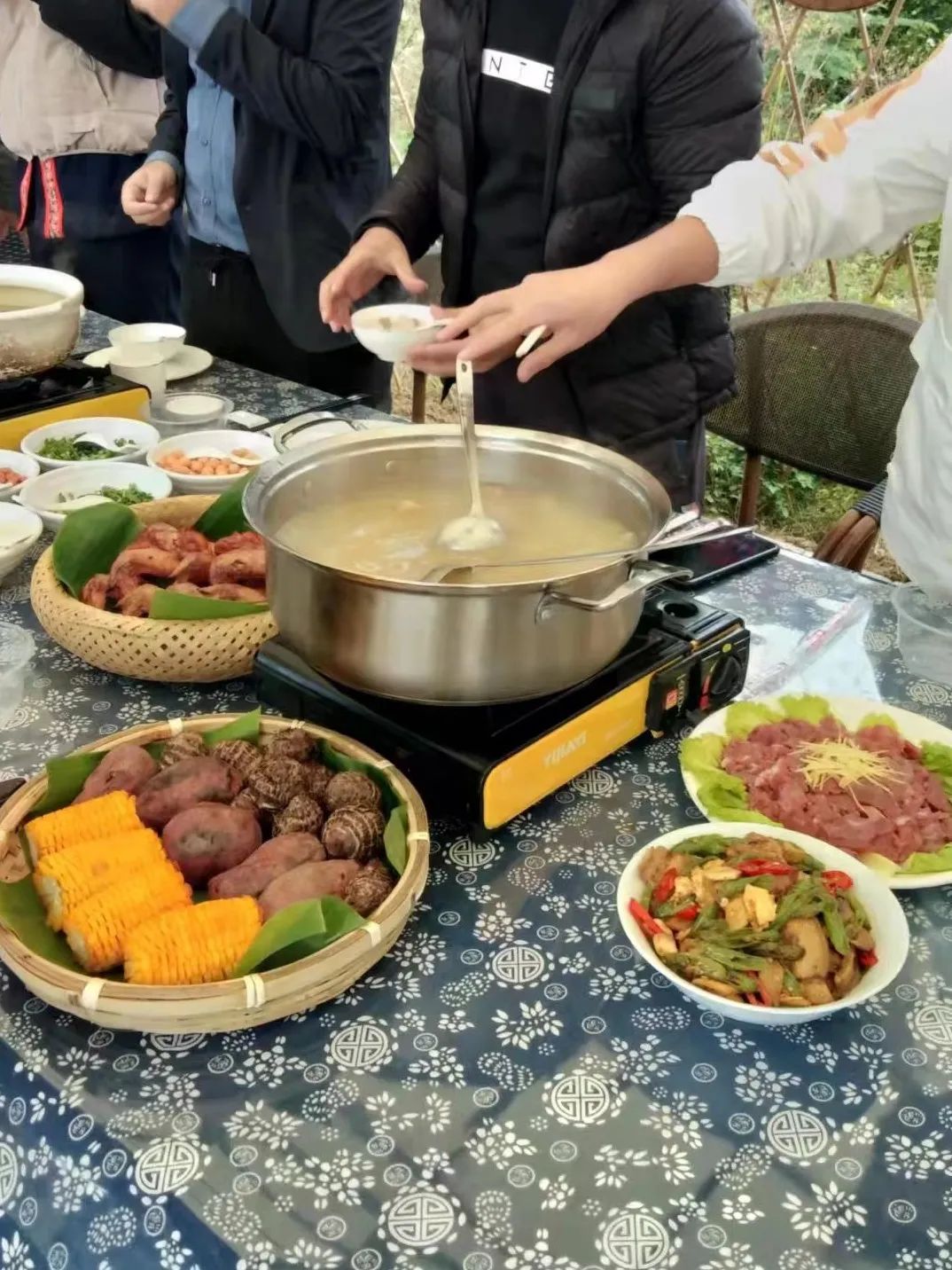田间地头的红薯大个又清甜,把土窑搭好,烧得红通通的,把红薯挨个丢进去,体验父辈们儿时的乐趣。如果看上了乡谣里自养的战斗鸡,也一起安排,包上锡纸埋好,等到一小时后,香喷喷的窑鸡能让所有人垂涎欲滴。