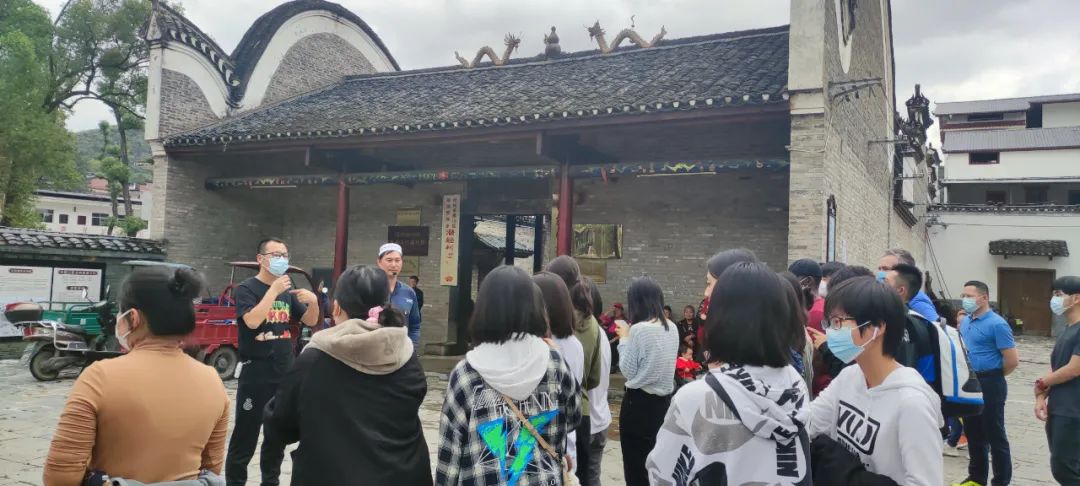 研学之旅的最后一站是潜经村,潜经村作为回族特色文化古村,同时它也是抗战英雄白崇禧先生的老家,它的文化底蕴可见非同一般,在潜经村同学们参观走访了白氏宗祠、清真寺及清代老宅院。在村委会主任及一位回族村民的介绍下,大家了解到风景秀丽的潜经村不仅有着丰富的生态旅游资源,还是一个具有600多年历史的回民聚居村庄,村内100多座回族古建筑保存完整。近年来,潜经村修复古村寨,建立回族陈列馆,振兴乡村旅游,使村民的幸福指数得到了极大提升。宽敞整洁的路面,焕然一新的村容村貌,都给师生们留下了深刻的印象。