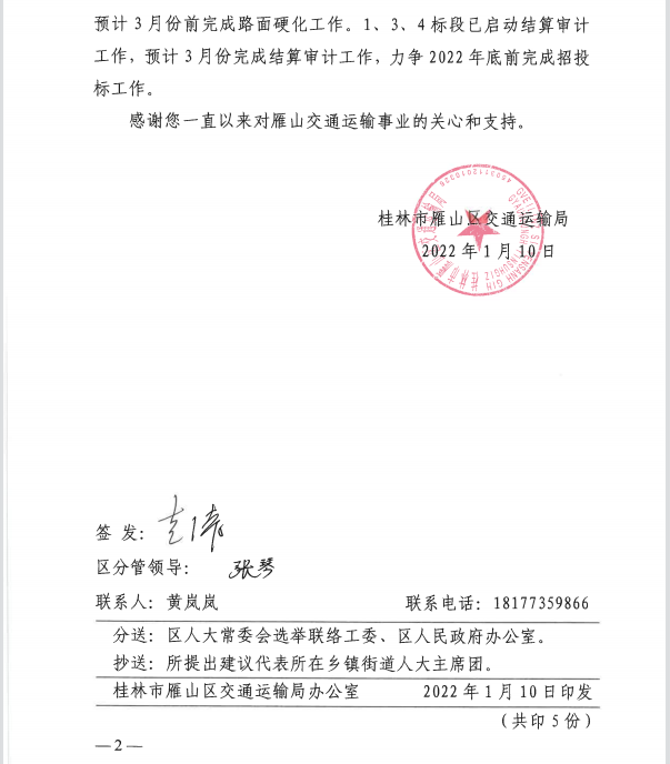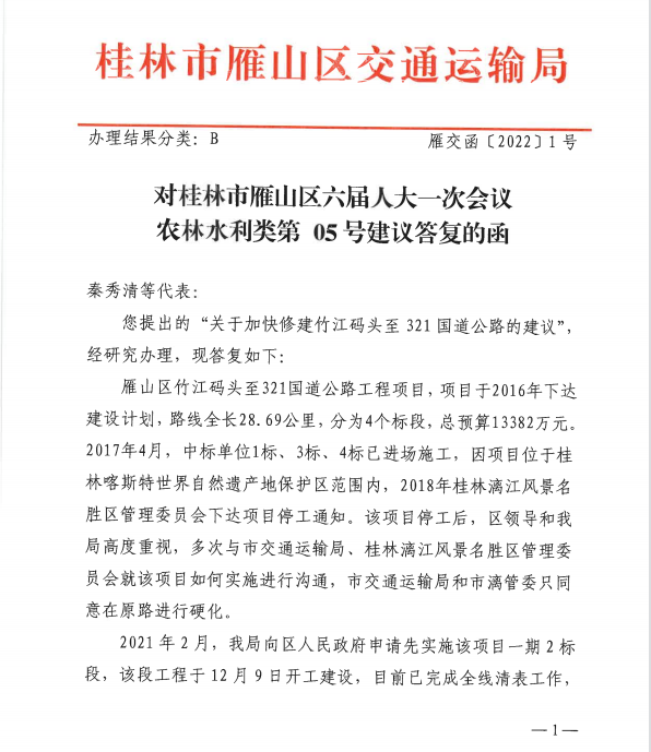对桂林市雁山区六届人大一次会议农林水利类第05号建议答复的函