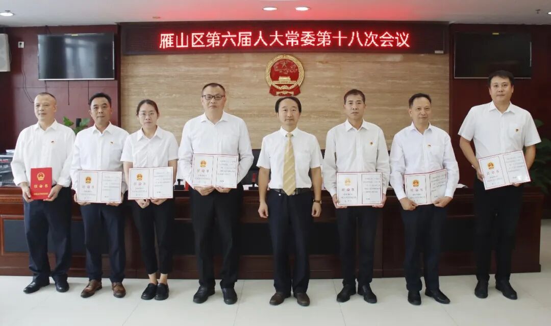 任命刘洪辉同志为雁山区人大常委会法制工作委员会主任(兼),文德荣同志为雁山区人大常委会预算工作委员会主任(兼),滕志理同志为雁山区人大常委会农业农村与城建环资工作委员会主任,阳明勇同志为雁山区人大常委会教科文卫旅游与民族工作委员会主任,陈直刚同志为雁山区人大常委会代表工作委员会主任,谌胜峰同志为雁山区人大监察与司法委员会副主任委员、区人大常委会法制工作委员会副主任(兼),龚凤明同志为雁山区人大财政经济和社会建设委员会副主任委员、区人大常委会预算工作委员会副主任(兼),薛宁江同志为雁山区人大常委会教科文卫旅游与民族工作委员会副主任,罗艺同志为雁山区人大常委会农业农村与城建环资工作委员会副主任,李彩日同志为雁山区人大常委会代表工作委员会副主任。