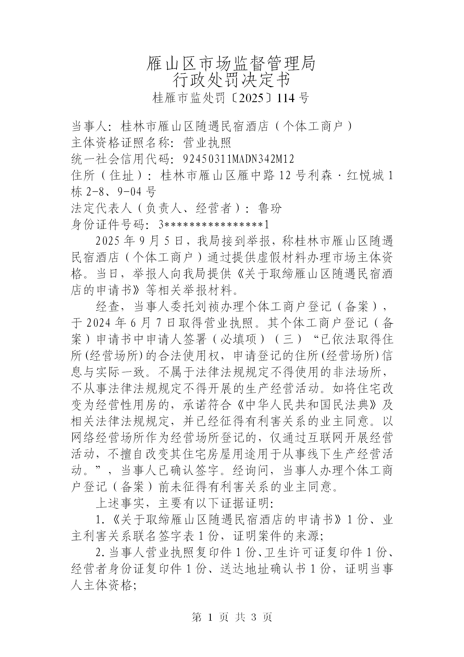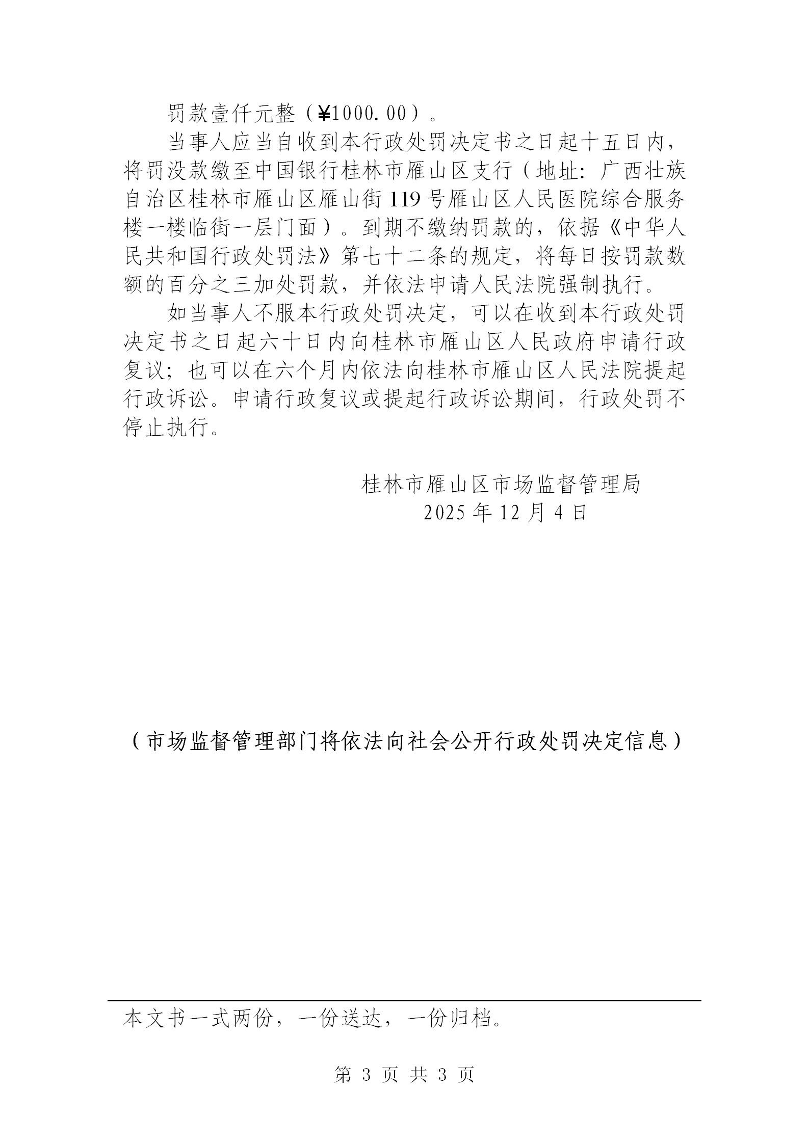 桂林市雁山区市场监督管理局行政处罚结果公告20251204