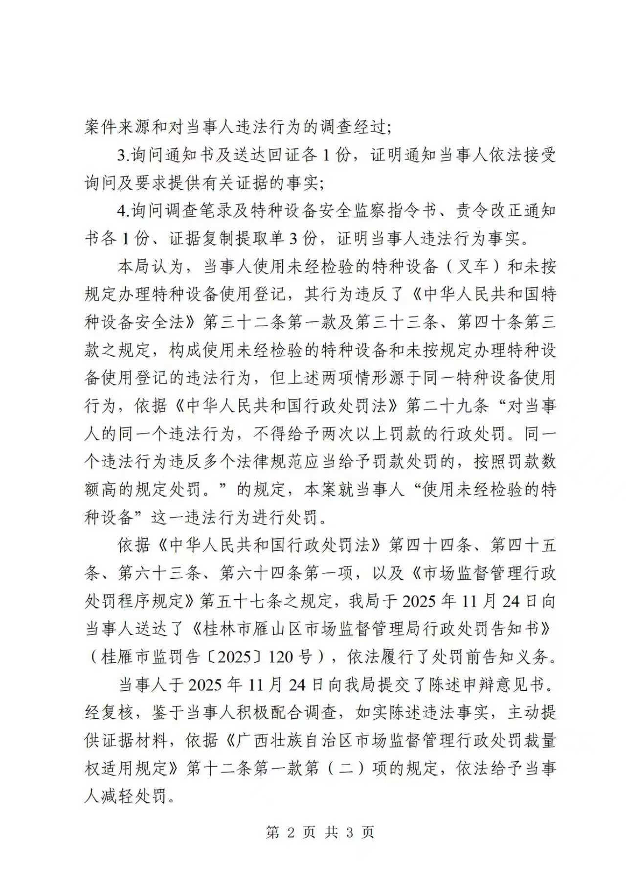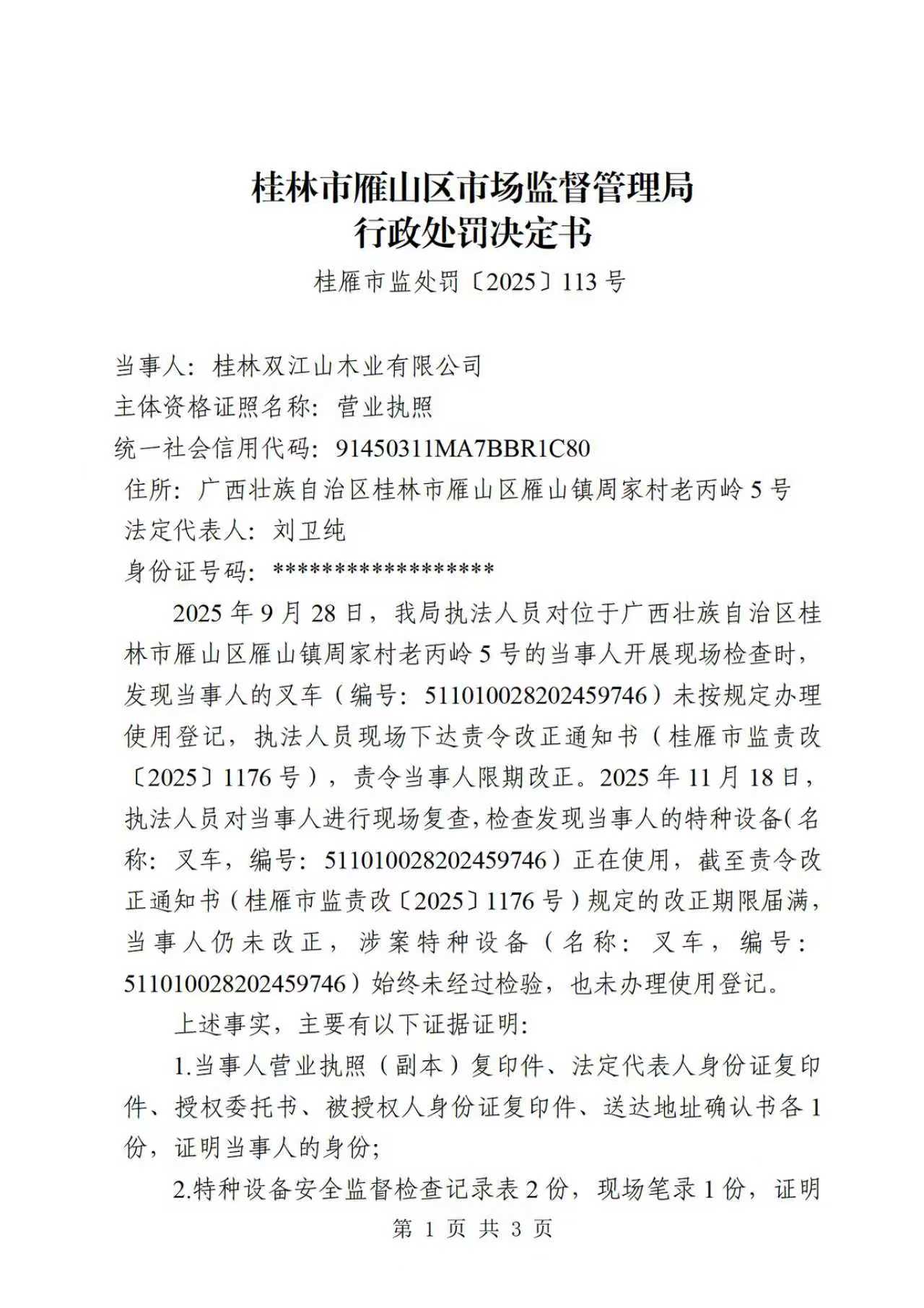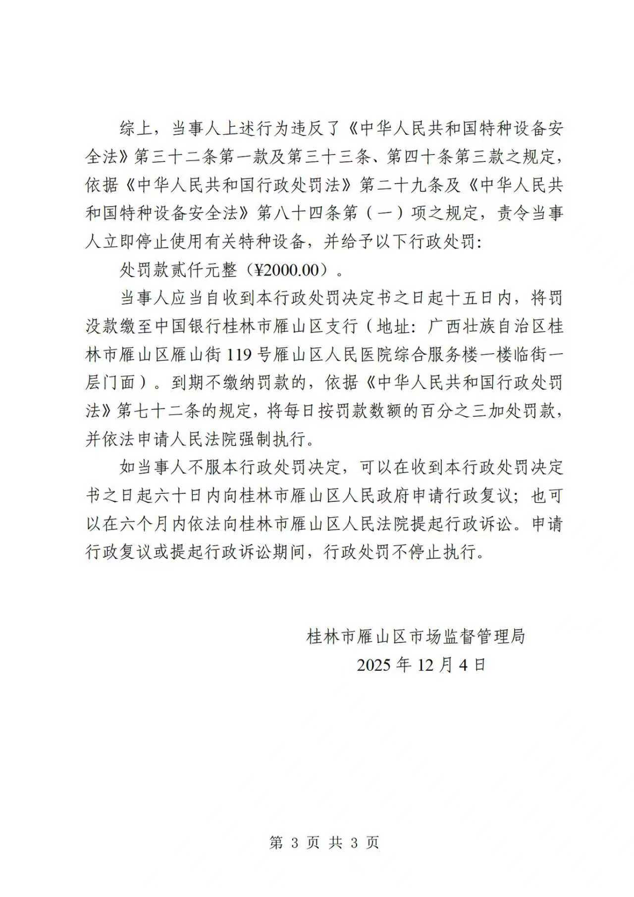 桂林市雁山区市场监督管理局行政处罚结果公告20251204