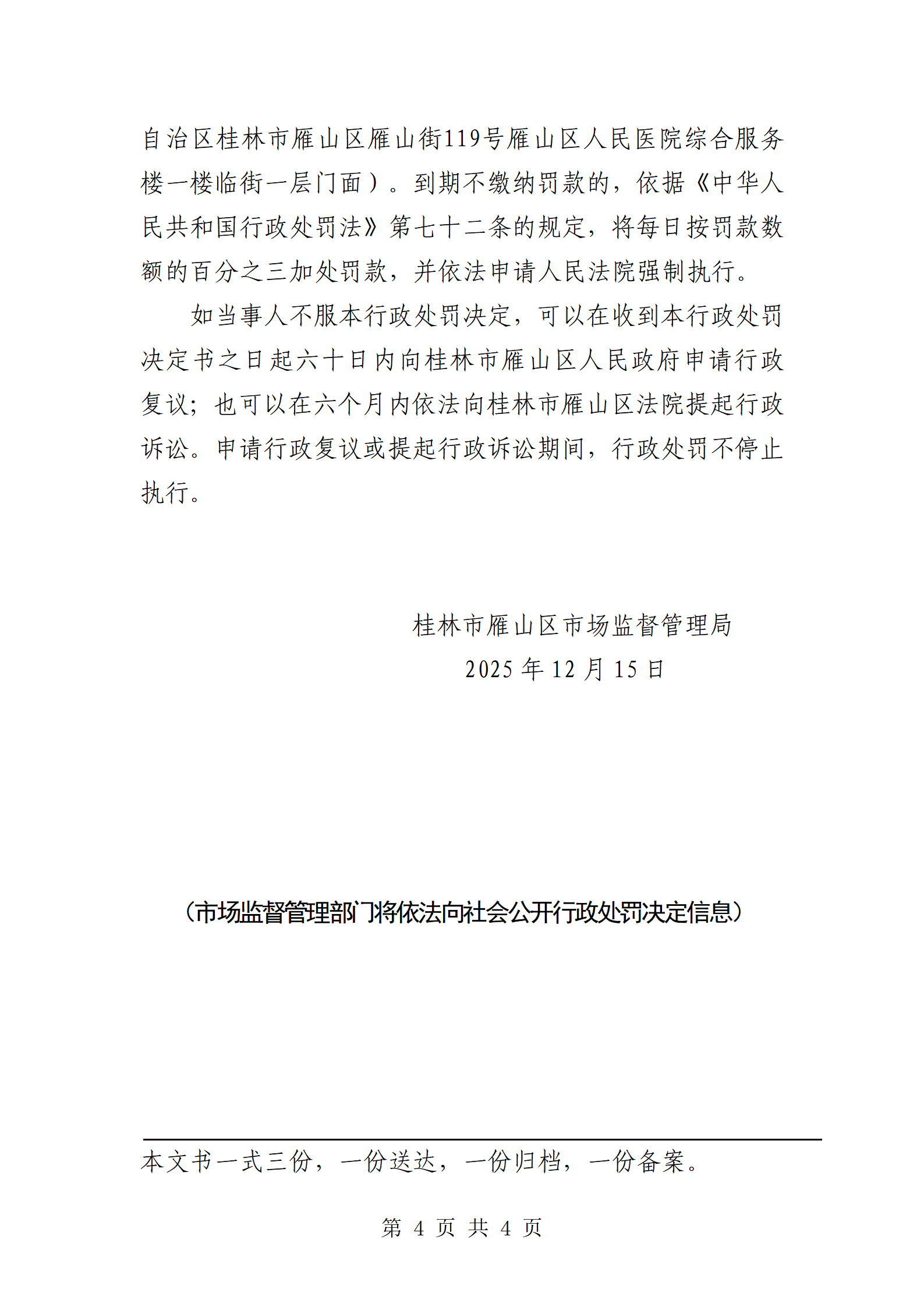 桂林市雁山区市场监督管理局行政处罚结果公告20251219