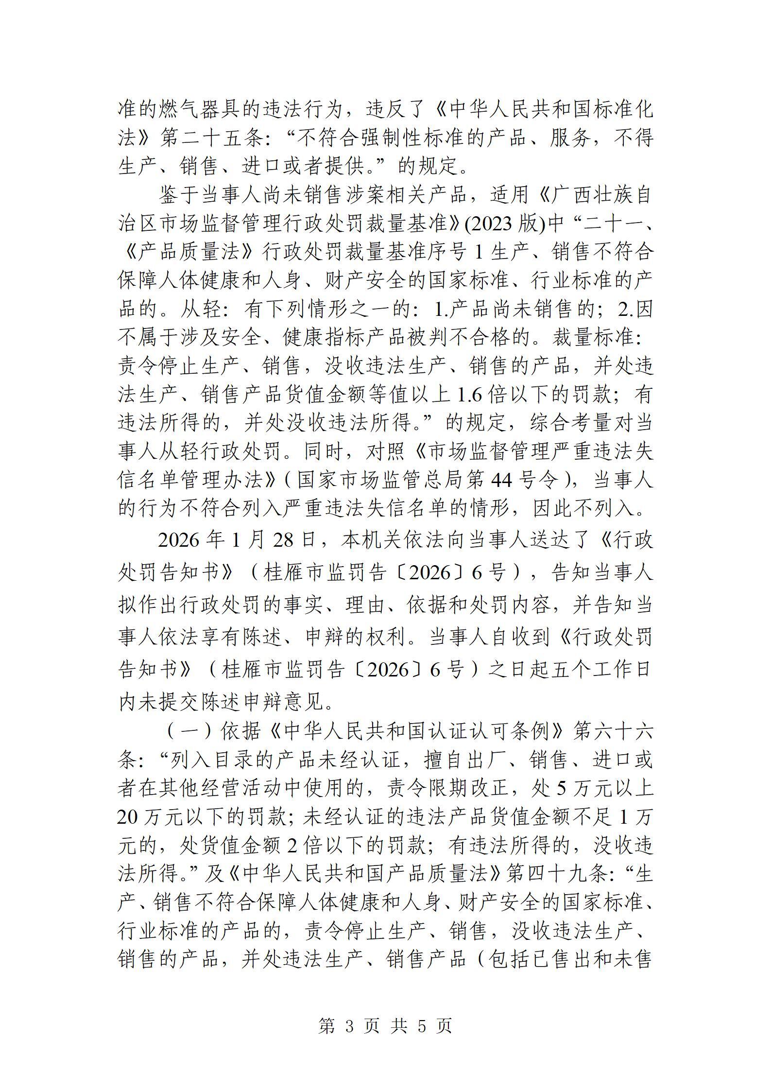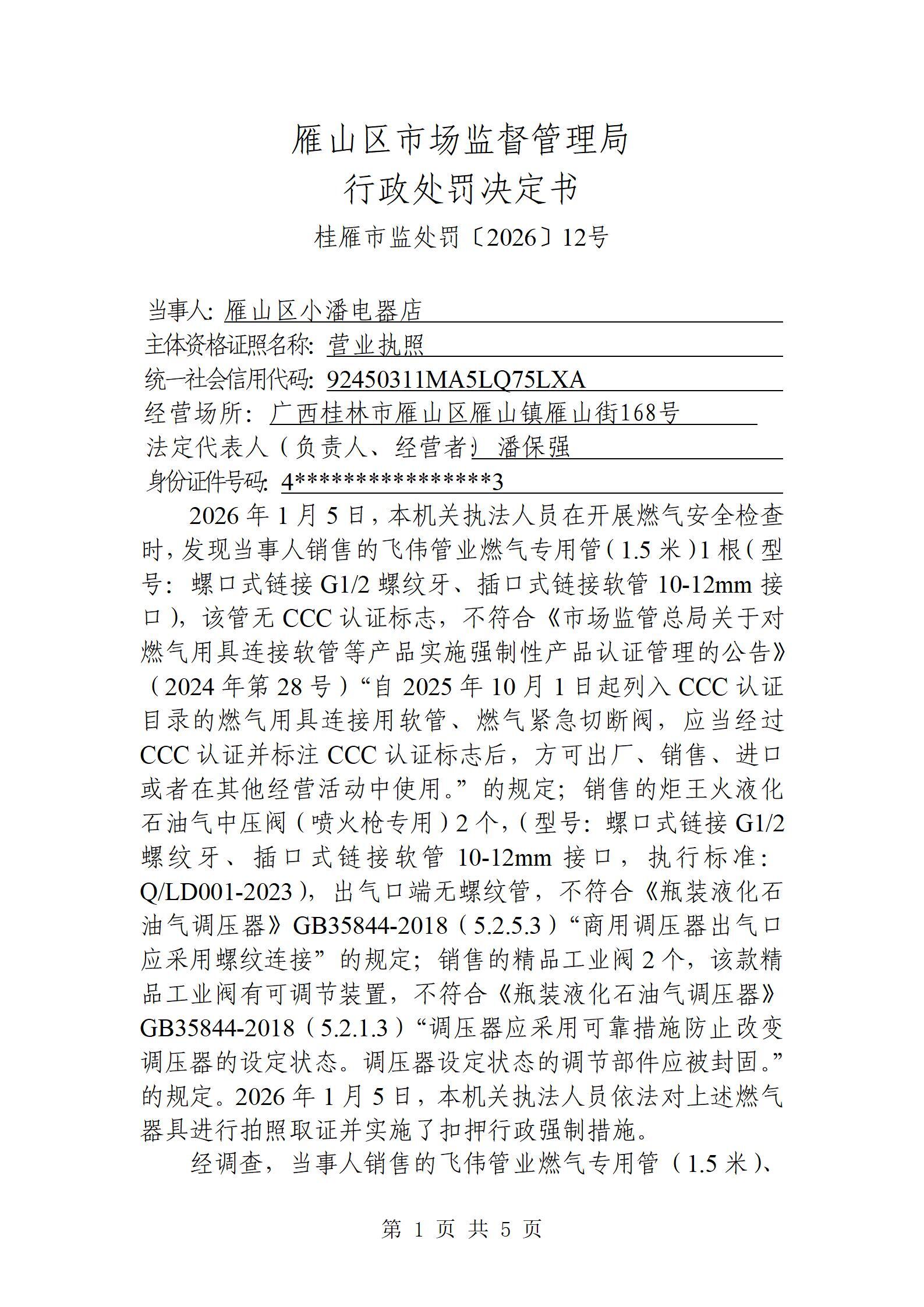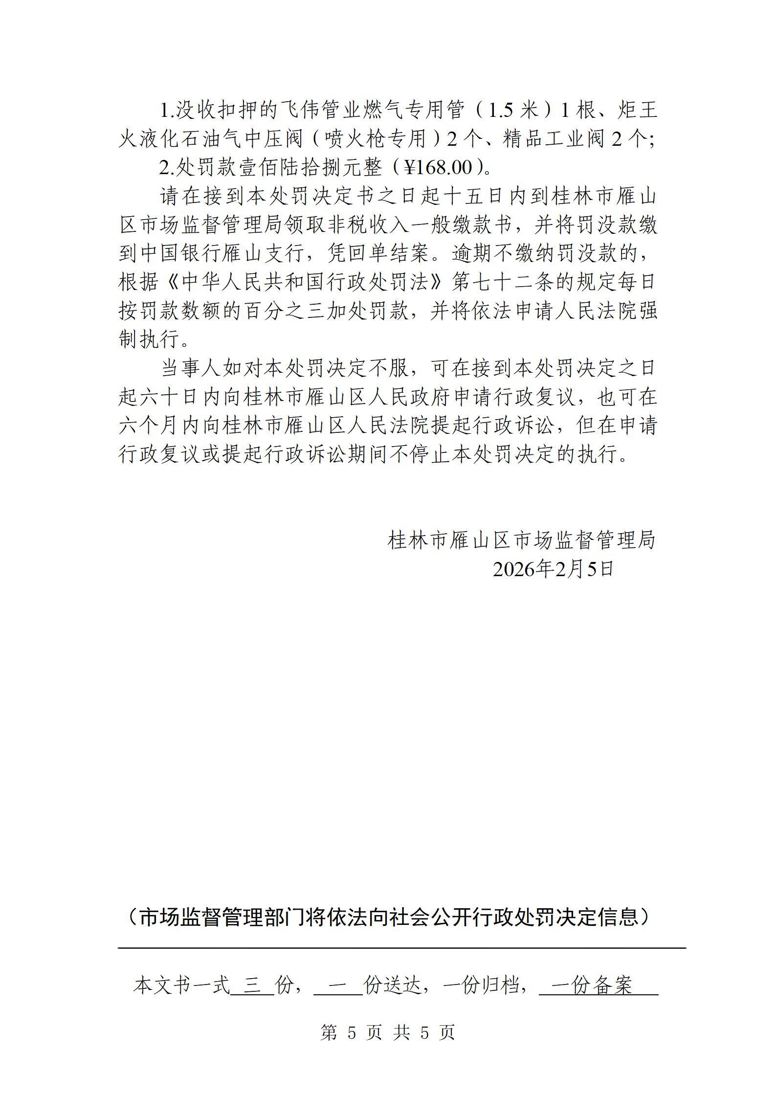 桂林市雁山区市场监督管理局行政处罚结果公告20260205