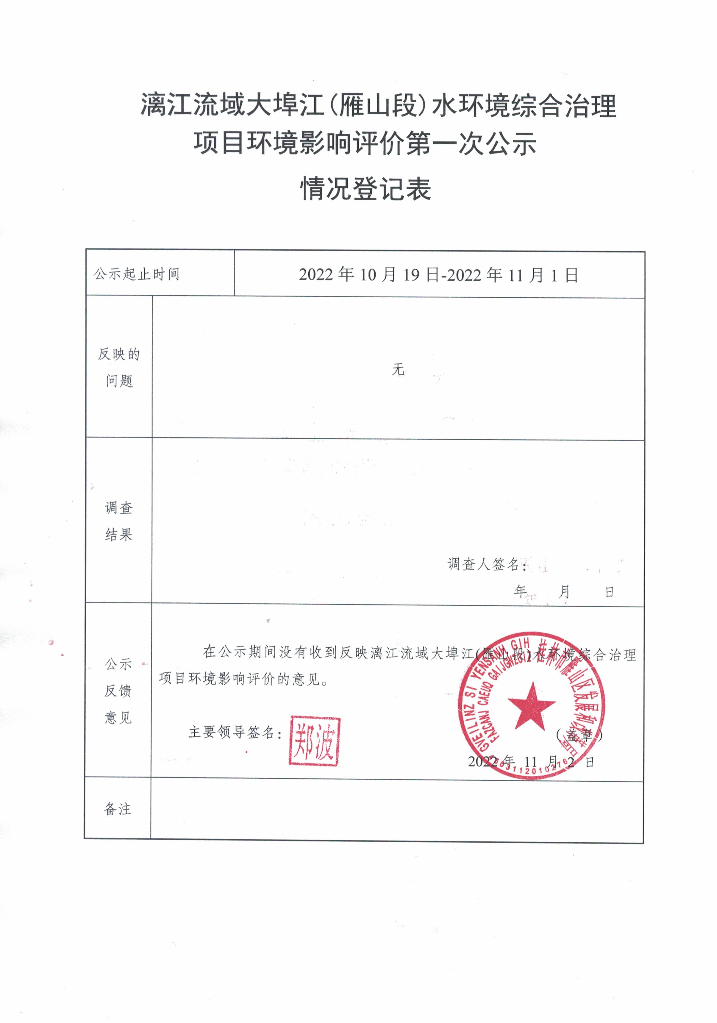 漓江流域大埠江(雁山段)水环境综合治理项目环境影响评价第一次公示情况登记表