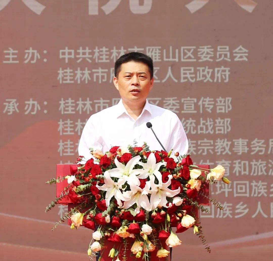 罗广依代表自治区民宗委,向草坪回族乡5000多各族人民表示热烈祝贺和亲切慰问,向所有关心和支持草坪回族乡发展的同志们、朋友们致以崇高敬意和衷心感谢。他希望,草坪回族乡各族干部群众继续鼓舞干劲、砥砺奋进,按照党中央、自治区党委、桂林市委和雁山区委的决策部署,始终坚持生态保护与经济发展相统筹,进一步践行“绿水青山就是金山银山”理念;始终坚持保障和改善民生,不断巩固拓展脱贫攻坚成果,扎实推进乡村振兴;始终坚持铸牢中华民族共同体意识这条主线,促进各民族交往交流交融,不断开创新时代新征程草坪回族乡高质量发展新局面,为奋力谱写中国式现代化广西篇章作出新的更大贡献!