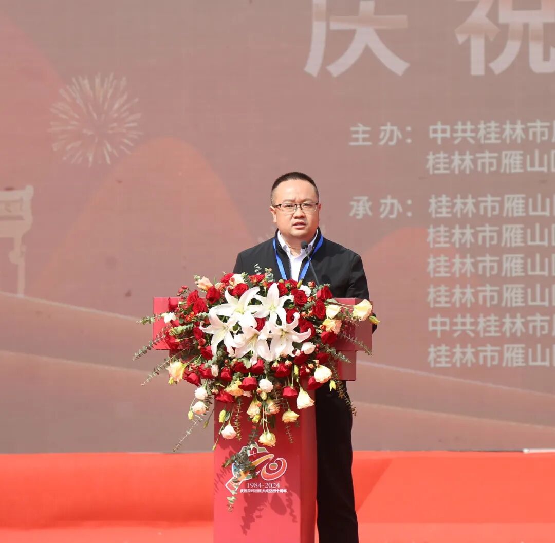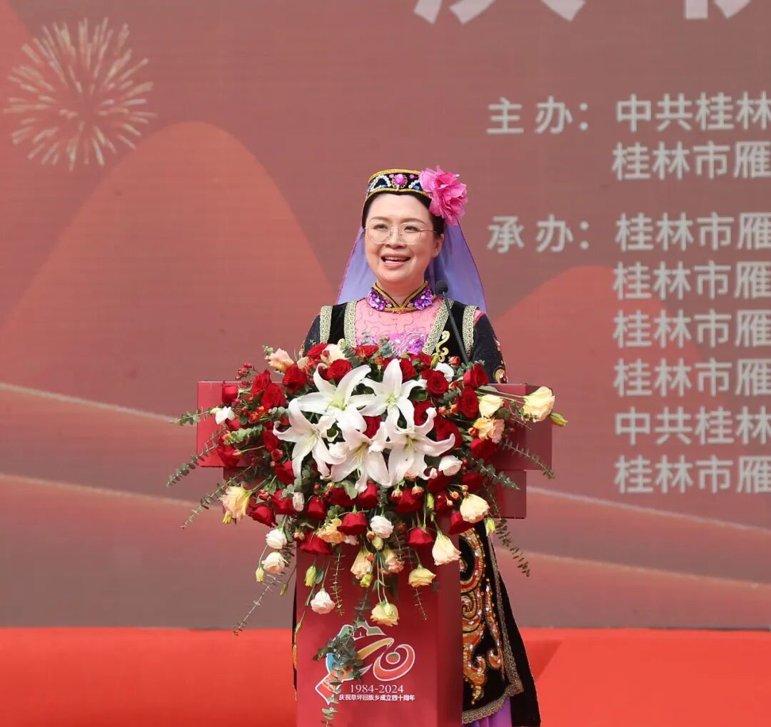 广西民族中等专业学校(广西壮文学校、广西民族高中)党委书记罗广依率自治区民宗委祝贺团,桂林市委常委、统战部长蒋育亮、市政协副主席谢永功率桂林市代表团,雁山区区委书记李强、区长潘军华率雁山区代表团到场庆贺。