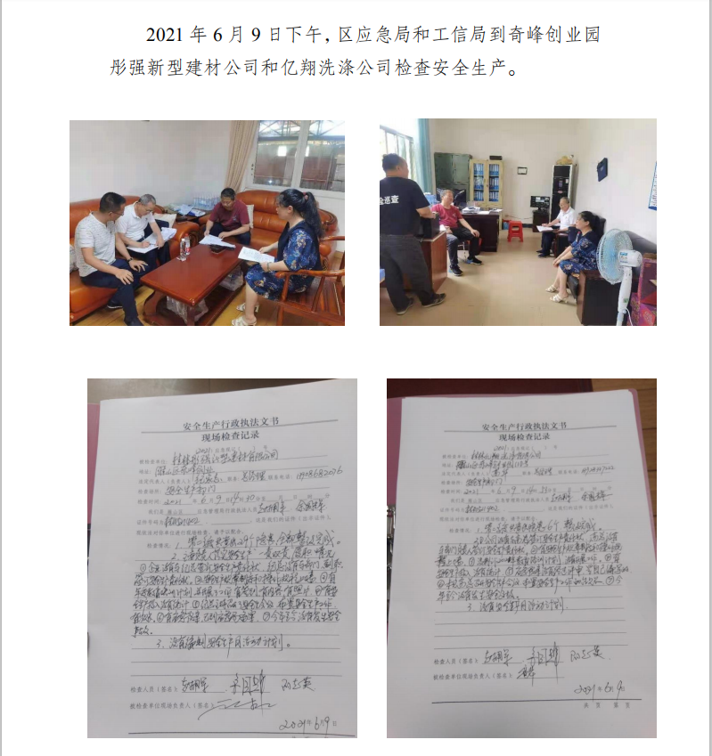 彤强新型建材公司和亿翔洗涤公司检查安全生产。