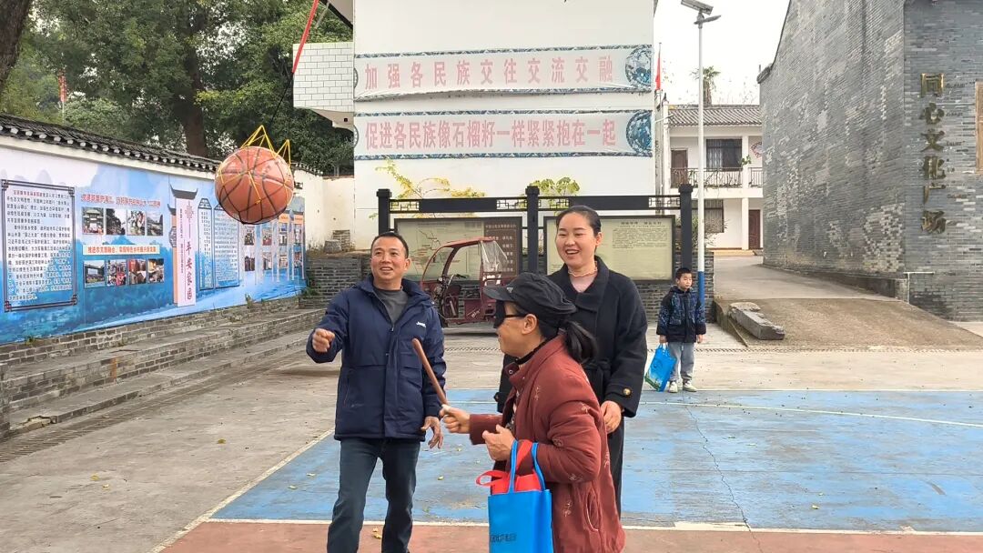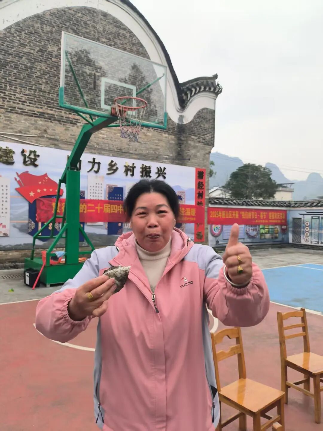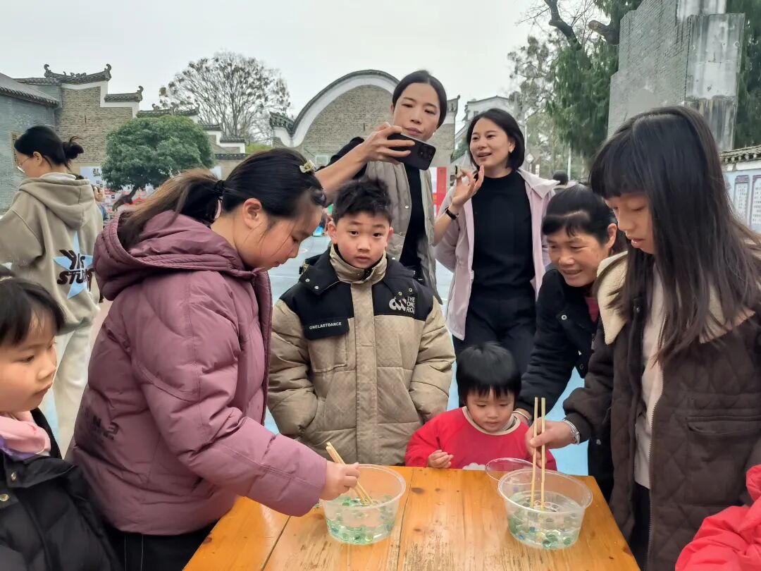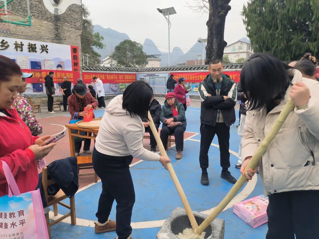 随着一声吆喝、一声锣鼓响起,活动正式拉开帷幕。篮球场上蒙眼打球、夹玻珠、打糍粑等活动热闹非凡,大人小孩子们玩的不亦说乎,尤其是争分夺秒决输赢的夹玻珠环节吸引了不少小孩子参与。结束后大家拿着奖品,尝着自己打出来的糍粑,心里乐滋滋。