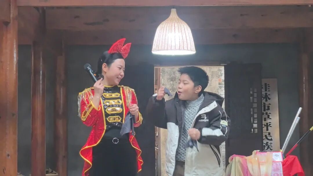 潜经茶馆内,老师们挥毫泼墨,一副副寓意吉祥的春联、一张张笔力遒劲的“福”字跃然纸上,承载着美好祝愿被送到百姓手中。与此同时,一旁的文艺节目轮番上演,渔鼓《桂林米粉》以其独特的节奏和接地气的词语,瞬间吸引了现场观众的眼球;歌曲《春风十万里》用悠扬的旋律传递着对美好生活的向往;魔术秀《茶间幻戏》更是引人入胜,其中穿插互动环节,观众被邀请登台直观体会了那句“魔法就在你相信的瞬间发生”;彩调《王三打鸟》则以其诙谐幽默的表演风格,引得现场笑声不断;最后以歌曲《阔步新时代》收尾,激昂的歌声寓意着新年新气象的“马”上发生。