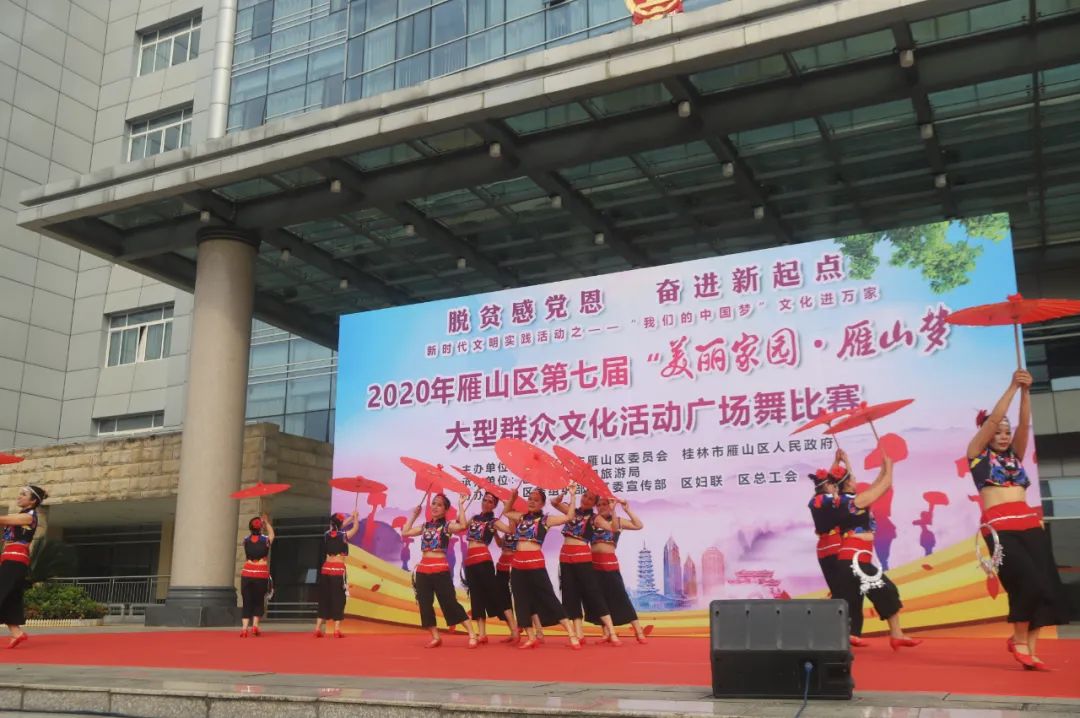 11月6日上午,雁山区在区政府广场隆重举行第七届“美丽家园·雁山梦”大型群众文化活动广场舞比赛,进一步展现我辖区经济社会发展取得的巨大成就,干部群众昂扬向上的精神风貌,丰富我区群众文化生活,促进群众文艺事业繁荣发展,振兴乡村感党恩。