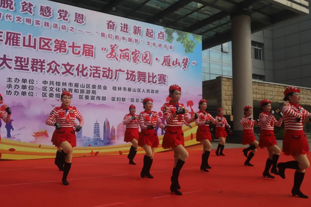 近年来,广场舞已经成为全民健身活动,是文化事业发展中不可或缺的组成部分,是新时代文明实践的重要载体。雁山区委、区政府大力推进文化建设,各类群众性文化体育健康有序开展,群众的获得感和幸福感明显增强,精神文明建设成效显著。