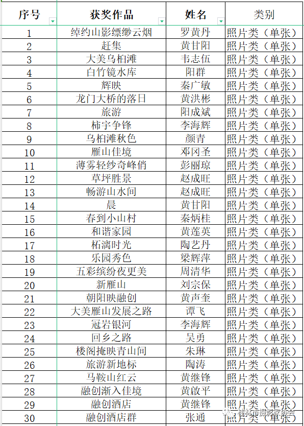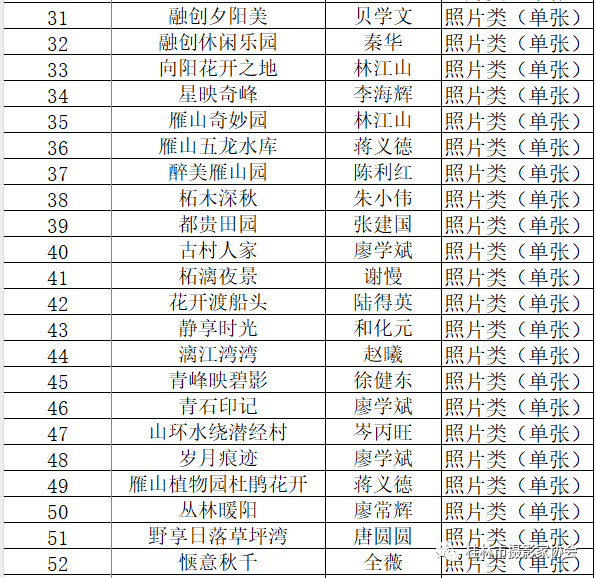 “视觉雁山”摄影大赛入选名单