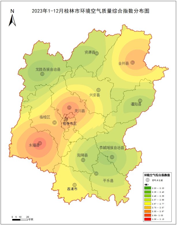 附图1 2023年12月桂林市环境空气质量综合指数分布图