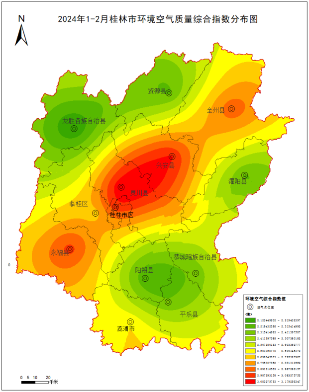附图1 20242月桂林市环境空气质量综合指数分布图