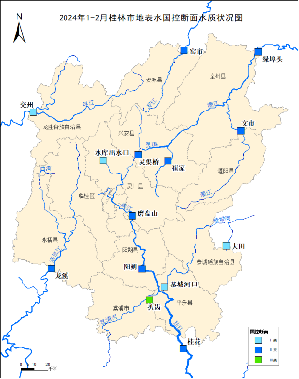 附图3    20241-2月桂林市地表水国控断面水质状况图