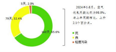 20241-8月空气污染物浓度值及变化情况见表2,与上年同期相比,CO浓度上升,其他污染物浓度下降。