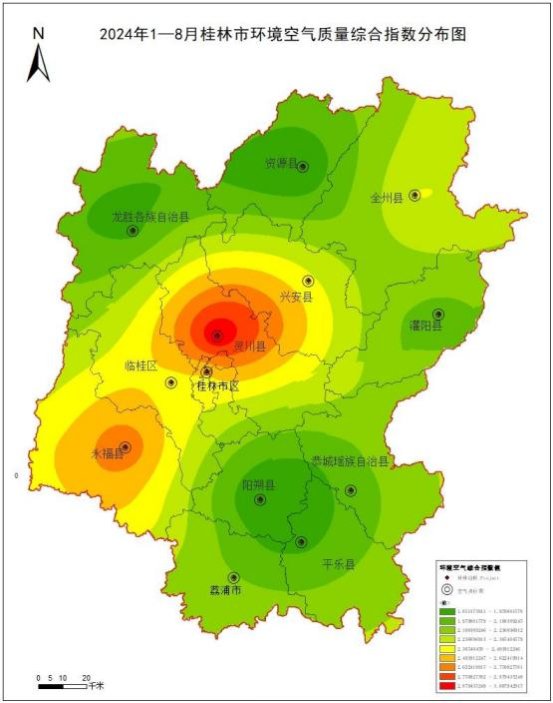 附图1        2024 1-8月桂林市环境空气质量综合指数分布图