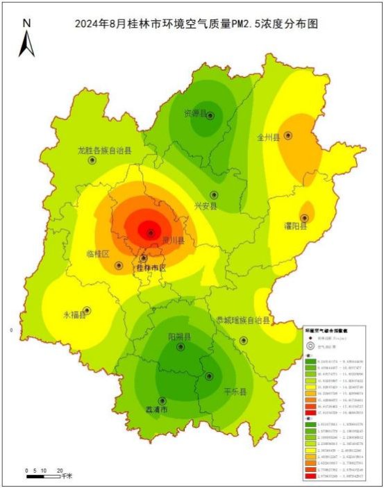 附图2        2024 8月桂林市环境空气质量PM2.5浓度分布图