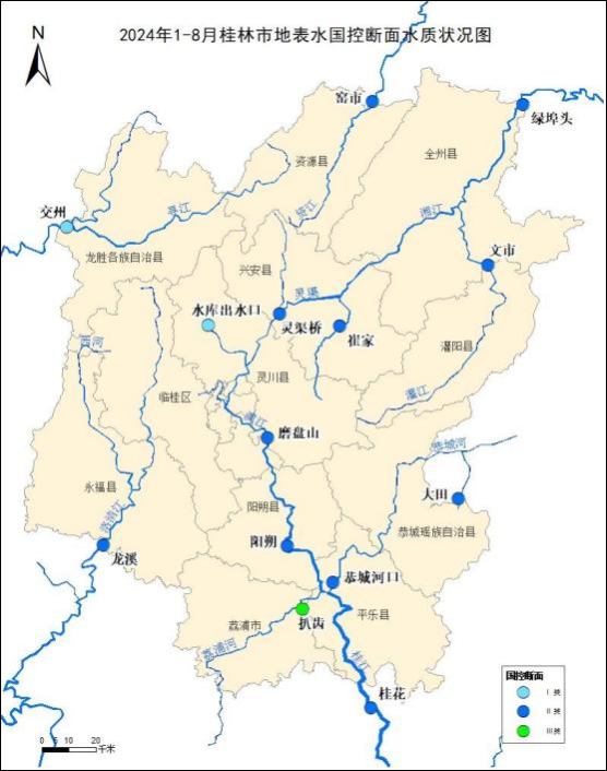 附图3        2024 1-8月桂林市地表水国控断面水质状况图