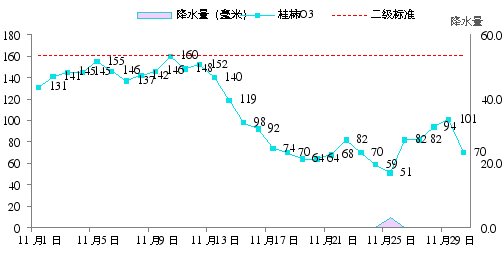 表1 2024年11月桂林市环境空气污染物浓度值及变化情况 单位:μg/m3