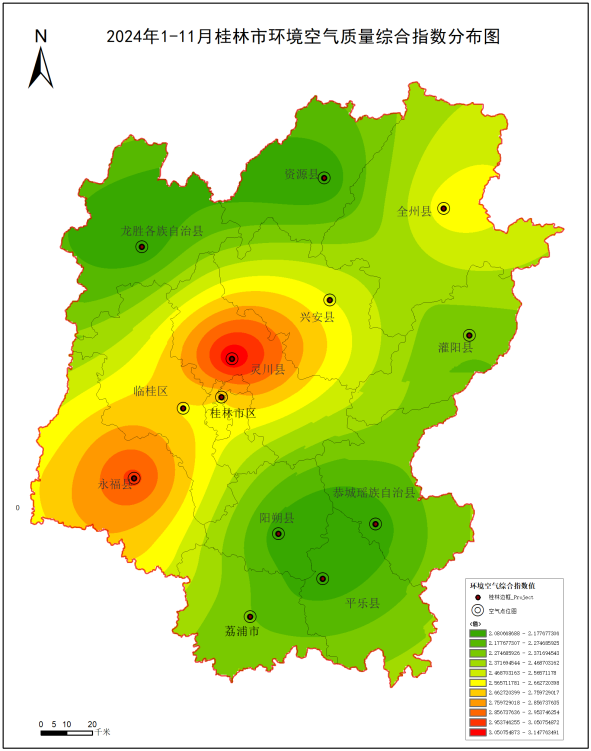 附图1 2024年1-11月桂林市环境空气质量综合指数分布图