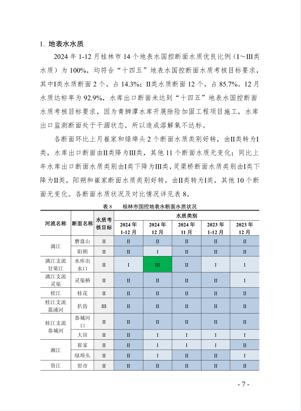 桂林市生态环境质量状况月报(2024年12月份)
